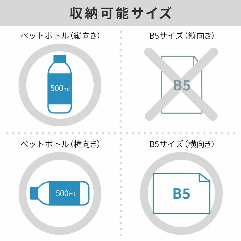 小さめのお弁当箱や500mlのペットボトル、