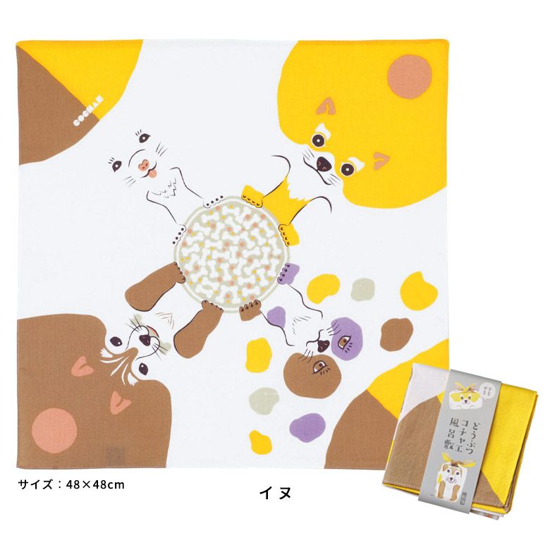 お弁当はもちろん、手土産を包んだり、贈り物を包んだり、使い方は様々な包んで楽しい風呂敷。 ”あそびのデザイン”をテーマに活動するデザイン・ユニット「こちゃえ」による、包んで楽しい風呂敷。 お弁当はもちろん、手土産を包んだり、贈り物を包んだり、使い方は様々。 >納期についてのご案内 販売期間 「在庫限り・再入荷の予定なし」数量限定生産品のため売り切れ次第販売終了となります。また各種オーダーの対象外です。 サイズ詳細 <本体> 48×48cm ※商品サイズの表記はおおよその値となります。 素材 綿100% 製造 日本製(京都秀和がま口製作所) お支払方法 クレジットカード/コンビニ後払い/Amazon Pay/楽天ペイ/PayPayクレジットカード決済、Amazon Pay、PayPay、楽天ペイをご選択の場合、システムの都合上、商品発送前にご請求させて頂く場合がございます。何卒ご了承下さいますようお願い申し上げます。規約に基づき返品、キャンセルもお受付できます。 発送方法 ゆうパケット:全国一律330円 4個までなら発送可能 ゆうパック:全国一律770円 日時指定可能 ※10,000円以上ご購入頂いた場合は送料無料になります。 商品説明 ”あそびのデザイン”をテーマに活動するデザイン・ユニット「こちゃえ」による、包んで楽しい風呂敷。 お弁当はもちろん、手土産を包んだり、贈り物を包んだり、使い方は様々。 ネコ:シロ、ブチ、ハチワレ、ミケの4種類の模様を愛らしいパステルトーンで表現。 イヌ:ビーグル、チワワ、秋田犬、柴犬。結ぶと1匹1匹の表情が一層豊かです。