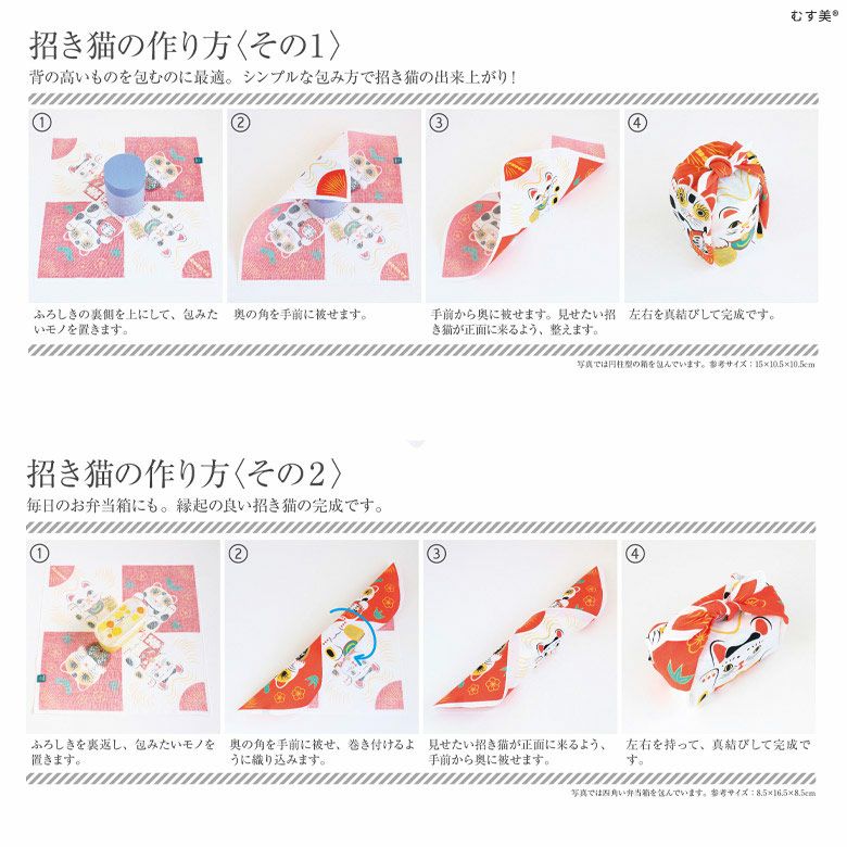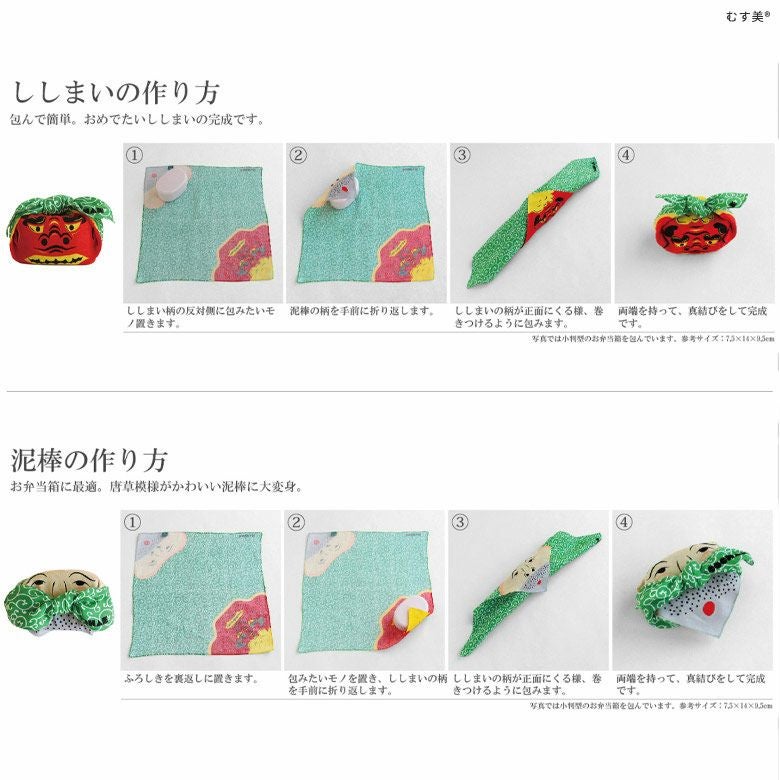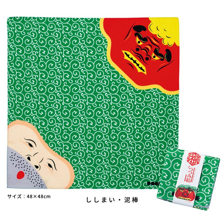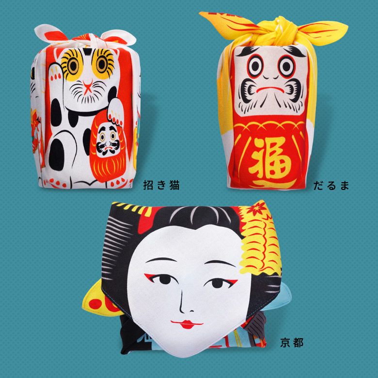 お弁当はもちろん、手土産を包んだり、贈り物を包んだり、使い方は様々な包んで楽しい風呂敷。 ”あそびのデザイン”をテーマに活動するデザイン・ユニット「こちゃえ」による、包んで楽しい風呂敷。 お弁当はもちろん、手土産を包んだり、贈り物を包んだり、使い方は様々。 >納期についてのご案内 販売期間 「在庫限り・再入荷の予定なし」数量限定生産品のため売り切れ次第販売終了となります。また各種オーダーの対象外です。 サイズ詳細 <本体> 48×48cm ※商品サイズの表記はおおよその値となります。 素材 綿100% 製造 日本製(京都秀和がま口製作所) お支払方法 クレジットカード/コンビニ後払い/Amazon Pay/楽天ペイ/PayPayクレジットカード決済、Amazon Pay、PayPay、楽天ペイをご選択の場合、システムの都合上、商品発送前にご請求させて頂く場合がございます。何卒ご了承下さいますようお願い申し上げます。規約に基づき返品、キャンセルもお受付できます。 発送方法 ゆうパケット:全国一律330円 4個までなら発送可能 ゆうパック:全国一律770円 日時指定可能 ※10,000円以上ご購入頂いた場合は送料無料になります。 商品説明 ”あそびのデザイン”をテーマに活動するデザイン・ユニット「こちゃえ」による、包んで楽しい風呂敷。 お弁当はもちろん、手土産を包んだり、贈り物を包んだり、使い方は様々。 東京:名所がならぶ東京の街には、おいしい食べ物もせいぞろい。 京都:大文字山や神社仏閣など歴史息づく京都。伝統文化や工芸品が華やか。 ししまい・泥棒:唐草文様といえば無病息災を祈る獅子舞。泥棒との大変身が楽しめます。 招き猫:表情豊かな4種類の招き猫で包めるとてもおめでたいふろしきです。 だるま:転んでも起き上がる縁起の良いだるま。包む方向で4つの顔が楽しめます。