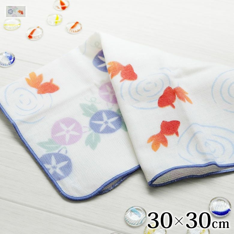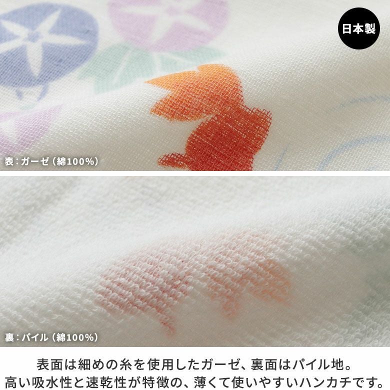 ハンカチ はんかち かわいい レディース プレゼント ガーゼ パイル 柔らか やわらか 使いやすい 吸水 朝顔 金魚 初夏 夏