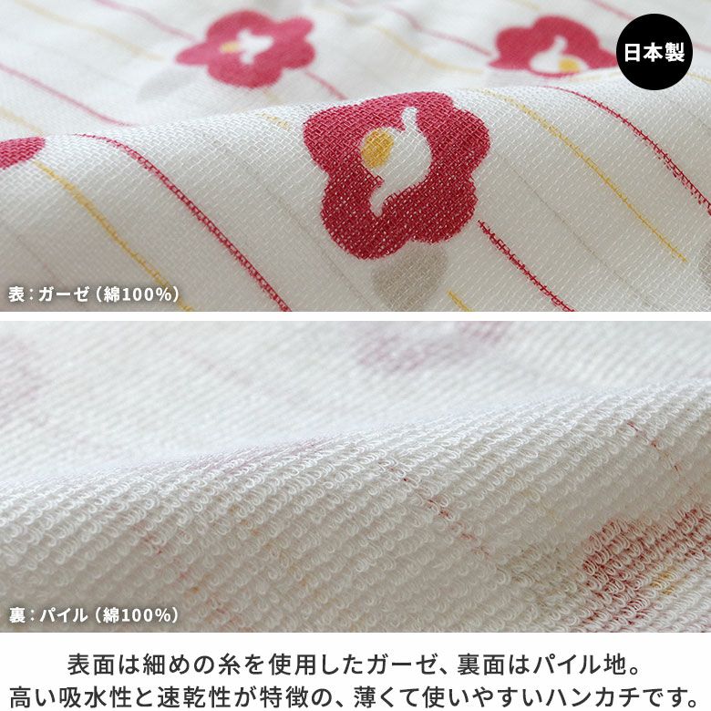 使えば使うほど、そして、洗えば洗うほど、その感触が肌になじんでくるてぬぐい。 日本の工場でこだわりを持って、ガーゼのやわらかさ、パイルのやさしさをしっかり感じられるよう、ごく細い糸を使って、薄くて軽くて乾きが早い手ぬぐいを作りました。とても柔らかで、やさしい肌ざわりです。 >納期についてのご案内 販売期間 「在庫限り・再入荷の予定なし」数量限定生産品のため売り切れ次第販売終了となります。また各種オーダーの対象外です。 サイズ詳細 34cm×90cm ※商品サイズの表記はおおよその値となります。 素材 綿100% お支払方法 クレジットカード/コンビニ後払い/Amazon Pay/楽天ペイ/PayPayクレジットカード決済、Amazon Pay、PayPay、楽天ペイをご選択の場合、システムの都合上、商品発送前にご請求させて頂く場合がございます。何卒ご了承下さいますようお願い申し上げます。規約に基づき返品、キャンセルもお受付できます。 発送方法 ゆうパケット:全国一律330円 2個までなら発送可能 ゆうパック:全国一律770円 日時指定可能 ※10,000円以上ご購入頂いた場合は送料無料になります。 商品説明 使えば使うほど、そして、洗えば洗うほど、その感触が肌になじんでくるてぬぐい。 日本の工場でこだわりを持って、ガーゼのやわらかさ、パイルのやさしさをしっかり感じられるよう、ごく細い糸を使って、薄くて軽くて乾きが早い手ぬぐいを作りました。とても柔らかで、やさしい肌ざわりです。 MATERIAL 表はガーゼ、裏はパイルの二重織。ガーゼ面もパイルも細い糸で織られているから、薄くて、軽くて、乾きやすいことが特長です。 手拭い てぬぐい タオル かわいい レディース プレゼント ガーゼ パイル 柔らか やわらか 使いやすい 吸水 花柄 ボタニカル つばき ツバキ 椿