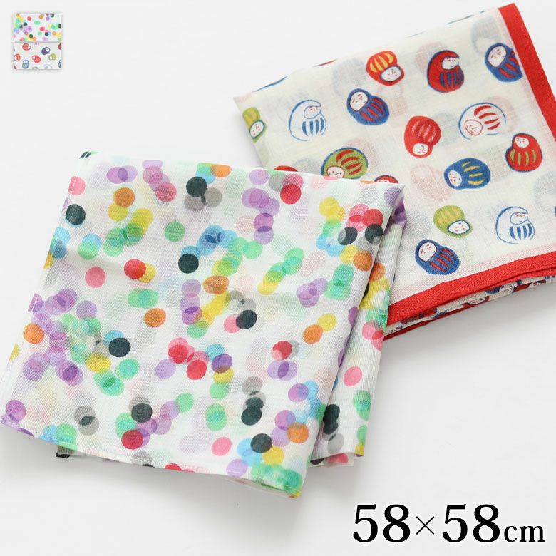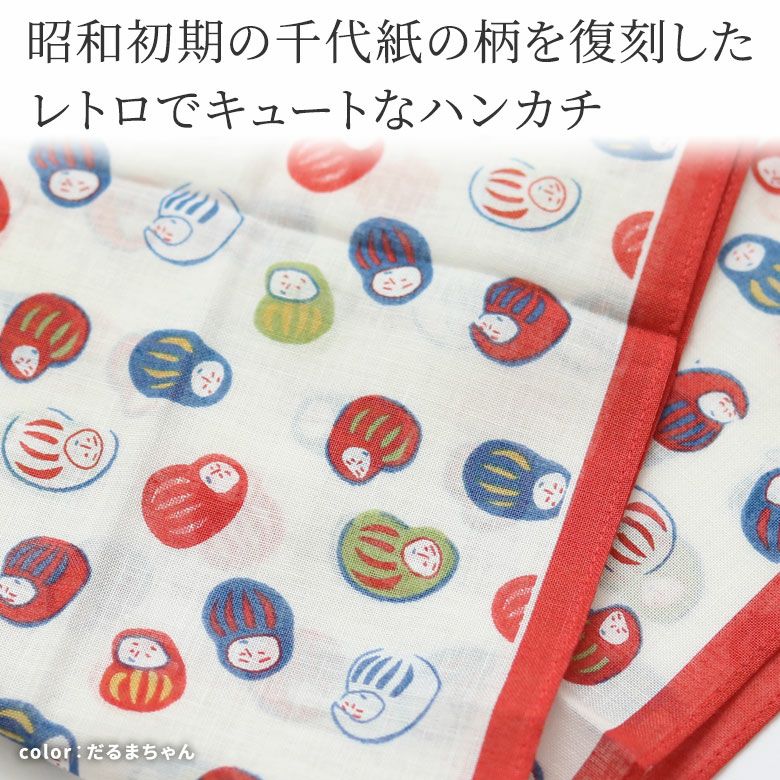 昭和初期の千代紙の柄を復刻したレトロでキュートなハンカチ 薄手の軽やかな風合いのハンカチで、大判サイズなので鞄や首に巻くスカーフとしてもお使いいただけます。 >納期についてのご案内 販売期間 「在庫限り・再入荷の予定なし」数量限定生産品のため売り切れ次第販売終了となります。また各種オーダーの対象外です。 サイズ詳細 58×58cm ※商品サイズの表記はおおよその値となります。 素材 綿100% 製造 日本製(京都秀和がま口製作所) お支払方法 クレジットカード/コンビニ後払い/Amazon Pay/楽天ペイ/PayPayクレジットカード決済、Amazon Pay、PayPay、楽天ペイをご選択の場合、システムの都合上、商品発送前にご請求させて頂く場合がございます。何卒ご了承下さいますようお願い申し上げます。規約に基づき返品、キャンセルもお受付できます。 発送方法 ゆうパケット:全国一律330円 4個までなら発送可能 ゆうパック:全国一律770円 日時指定可能 ※10,000円以上ご購入頂いた場合は送料無料になります。 商品説明 昭和初期の千代紙の柄を復刻したレトロでキュートなハンカチ。 薄手の軽やかな風合いのハンカチで、大判サイズなので鞄や首に巻くスカーフとしてもお使いいただけます。 COLOR ・水玉・だるまちゃん