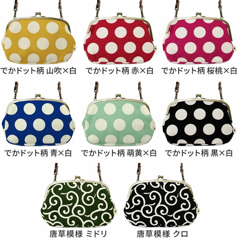 透明ポケットが付いたショルダーバッグ。 外ポケットが透明なビニールなので、ポケットに入れたままでもスマホが見れてタッチ操作が可能。※細かい操作には不向きです。 >納期についてのご案内 備考 ※生地の裁断により柄の出方は一点一点異なります。柄の指定は受け付けておりません。※商品の仕様や価格は予告なく変更する場合があります。※がま口はその特性上、荷物の大きさや重さで強い力が加わると口金が開きやすくなります。※内寸外寸ともに実寸で表記しています。※生地の種類によって表記のサイズと誤差が生じる場合があります。※置いた状態で測っているので多少の誤差があります。※手づくりのため個体差があります。あらかじめご了承ください。 サイズ詳細 <本体> 外寸:高さ16.5cm、幅21cm、マチ3cm 内寸:高さ14cm、幅20cm ビニールポケット:高さ10cm、幅17.5cm 内ポケット:高さ11.5cm、幅9cm <ベルト> 幅1cm、長さ120cm(金具含む・調節不可) <重さ> 185g(ベルト含む) ※外寸は口金を含みます。※内寸は口金を含みません。 使用可能なアイテム ・ポシェット用 120cmショルダーチェーン - NK/GL/AG・ポシェット用 1cm幅合皮ベルト(豆レバー)- NK/AG ※調整不可・ポシェット用 1cm幅1本線送り合皮ベルト(豆レバー)NK/AG 素材 <袋> 表地:8号帆布(綿100%)、裏地:綿100%(※裏地の色は共通) <ベルト本体> 合皮 <口金> 鉄(アンティークゴールド) 製造 日本製(京都秀和がま口製作所) お支払方法 クレジットカード/コンビニ後払い/Amazon Pay/楽天ペイ/PayPayクレジットカード決済、Amazon Pay、PayPay、楽天ペイをご選択の場合、システムの都合上、商品発送前にご請求させて頂く場合がございます。何卒ご了承下さいますようお願い申し上げます。規約に基づき返品、キャンセルもお受付できます。 発送方法 ゆうパケット:全国一律330円 1個までなら発送可能 ゆうパック:全国一律770円 日時指定可能 ※10,000円以上ご購入頂いた場合は送料無料になります。 商品説明 透明ポケットが付いたショルダーバッグ。外ポケットが透明なビニールなので、ポケットに入れたままでもスマホが見れてタッチ操作が可能。※細かい操作には不向きです。 がま口の中には文庫本やA6サイズの手帳などが入ります。背面内側にはポケットが2つあるので、小物収納に便利。ザクっとした帆布の生地感がポップなカラーにピッタリです。 MATERIAL AYANOKOJIでは定番の8号帆布を使用しています。帆布は耐久性に優れ、通気性が良く、摩擦にも強い素材です。使い始めは硬く感じますが、使えば使うほど柔らかくなり、程よく手に馴染んできます。 スマホショルダー スマホポシェット レディース メンズ ユニセックス ドット 水玉 唐草 帆布 かわいい 大きい 女性が 喜ぶ 喜ばれる プレゼント もらって 嬉しい ちょっと 良いもの いいもの おすすめ 日本製 京都 ガマグチ がまぐち