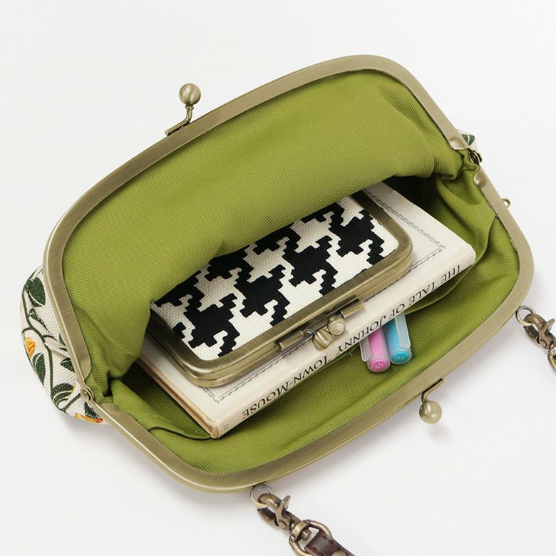 バッグに入れたままスマホにタッチ、透明ポケット付きバッグ。 がま口の形の果実が実る、ほんのり北欧テイスト、AYANOKOJIオリジナル帆布のがまの実シリーズからがま口スマホショルダーバッグです。 ほんのり丸みのあるシンプルでコンパクトなバッグ。少ない荷物のお出かけや旅行など、アクティブな一日にもピッタリなバッグです。 透明な外ポケットはビニールで、スマホをポケットに入れたままのスマホ操作が可能。※写真で使用のスマホはiPhone XR(約15.1×7.6×0.8cm) 小さめのお財布、文庫本やA6サイズの手帳が入ります。背面側には内ポケットが2つあるので、小物収納も便利。 >納期についてのご案内 サイズ詳細 <本体> 外寸:高さ16.5cm、幅(最大)24cm、マチ3cm 内寸:高さ13cm、幅19cm ビニールポケット:高さ10.5cm、幅17.5cm 内ポケット:高さ10.5cm、幅9cm×2 <ベルト> 幅1cm、長さ120cm(金具含む・調節不可) <重さ> 165g(ベルト含む) ※商品サイズの表記はおおよその値となります。 ※外寸は口金を含みます。 ※内寸は口金を含みません。 使用可能なベルト ・ポシェット用 120cmショルダーチェーン - NK/GL/AG・ポシェット用 1cm幅合皮ベルト(豆レバー) - NK/AG ※調整不可・ポシェット用 1cm幅1本線送り合皮ベルト(豆レバー) NK/AG 素材 <袋> 表地:8号帆布(綿100%)、裏地:綿100% <口金> 鉄(アンティークゴールド) <ベルト> 本体:合成皮革 金具:合金・鉄 製造 日本製(京都秀和がま口製作所) お支払方法 クレジットカード/コンビニ後払い/Amazon Pay/楽天ペイ/PayPayクレジットカード決済、Amazon Pay、PayPay、楽天ペイをご選択の場合、システムの都合上、商品発送前にご請求させて頂く場合がございます。何卒ご了承下さいますようお願い申し上げます。規約に基づき返品、キャンセルもお受付できます。 発送方法 ゆうパケット:全国一律330円 1個までなら発送可能 ※10,000円以上ご購入頂いた場合は送料無料になります。 商品説明 バッグに入れたままスマホにタッチ、透明ポケット付きバッグ。 ほんのり丸みのあるシンプルでコンパクトなバッグ。少ない荷物のお出かけや旅行など、アクティブな一日にもピッタリなバッグです。 透明な外ポケットはビニールで、スマホをポケットに入れたままのスマホ操作が可能。※写真で使用のスマホはiPhone XR(約15.1×7.6×0.8cm) 小さめのお財布、文庫本やA6サイズの手帳が入ります。背面側には内ポケットが2つあるので、小物収納も便利。