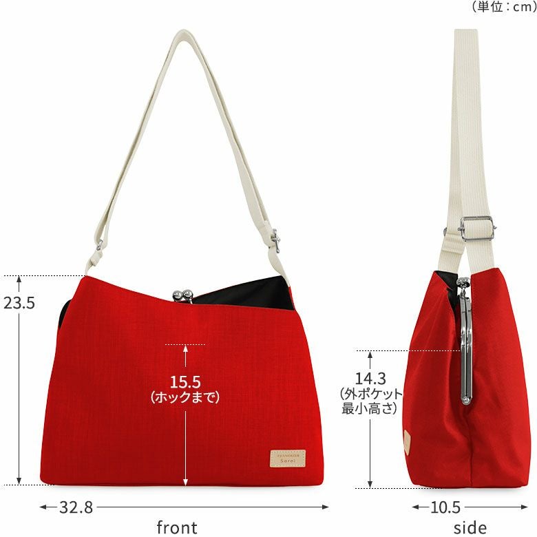 ショルダー紐の長さを調節して(59.5cm~108.5cm)、斜めがけ・肩掛けの2スタイルでご使用いただけます。