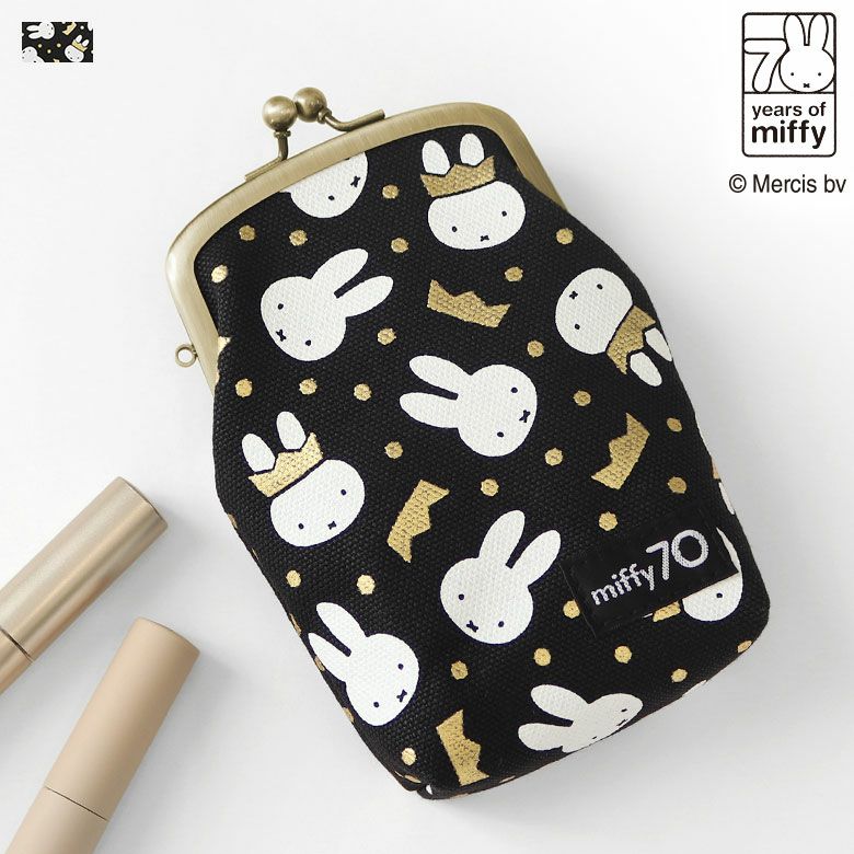 【在庫商品】縦型がま口ケース【miffy70th(Gold&Black)】 [M便 1/6]