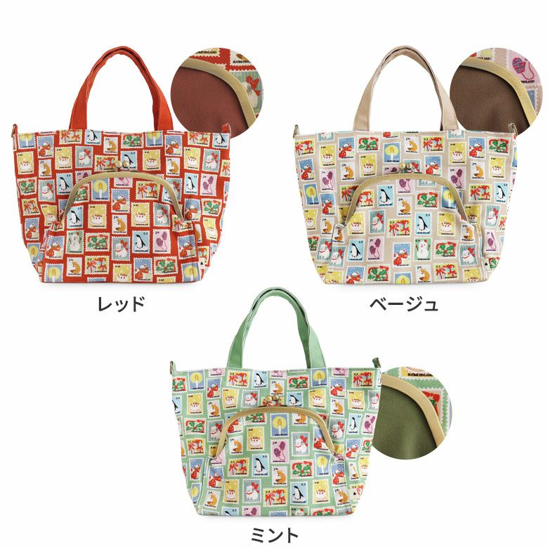 存在感のあるがま口ポケットが付いた、ミニトートバック。 使いやすいサイズのポーチ。スリムなマチ幅なので、小さめバッグや、ビジネスバッグなどの薄型バッグの中でもかさ張りません。 小物の小分けに便利な内ポケットが付いています。 >納期についてのご案内 備考 ※生地の裁断により柄の出方は一点一点異なります。柄の指定は受け付けておりません。 ※ショルダーベルトは付属していません。 ※がま口はその特性上、荷物の大きさや重さで強い力が加わると口金が開きやすくなります。 ※内寸、外寸ともに実寸で表記しています。※置いた状態で測っているので多少の誤差が生じる場合があります。※手づくりのため、細かな個体差があります。※生地の厚みや素材によって表記のサイズと多少の誤差が生じる場合があります。 あらかじめご了承ください。 販売期間 「在庫限り・再入荷の予定なし」数量限定生産品のため売り切れ次第販売終了となります。また各種オーダーの対象外です。 サイズ詳細 <本体> 外寸:高さ23cm(持ち手含まず)、幅(最大)34cm、(最小)23cm、マチ12.5cm 内寸:高さ20cm、幅(最大)32cm、幅(最小)23cm <前がま口ポケット> 内寸:高さ15cm、幅15.5cm <持ち手> 高さ12.5cm、幅2.5cm <重さ>325g ※商品サイズの表記はおおよその値となります。 ※外寸は口金を含みます。 ※内寸は口金を含みません。 使用可能なアイテム ・がまろっく・1.5cm幅1本線送り合皮ベルト NK/AG・ショルダーバッグ用1.5cm幅合皮ベルト - NK/AG・ショルダー用2cm合皮ベルト - NK/AG・ショルダーBAG用2cm幅テープベルト AG/NK 素材 <袋> 表地:綿100% 裏地:綿100% <口金> 鉄(アンティークゴールド) 製造 日本製(京都秀和がま口製作所) お支払方法 クレジットカード/コンビニ後払い/Amazon Pay/楽天ペイ/PayPayクレジットカード決済、Amazon Pay、PayPay、楽天ペイをご選択の場合、システムの都合上、商品発送前にご請求させて頂く場合がございます。何卒ご了承下さいますようお願い申し上げます。規約に基づき返品、キャンセルもお受付できます。 発送方法 ゆうパック:全国一律770円 日時指定可能 ※10,000円以上ご購入頂いた場合は送料無料になります。 商品説明 存在感のあるがま口ポケットが付いた、ミニトートバック。 メイン収納口は、マグネットホックが付属しているので安心です。B5サイズのものが横にすっぽり入ります。外側のがま口ポケットは、すぐに取り出したい小物の収納などに便利です。 また、本体の両サイドには、Dカンが付いているのでショルダーベルトを付けられます。※ショルダーベルトは別売り。 MATERIAL AYANOKOJIでは定番の生地、強度に優れた8号帆布を使用しています。 COLOR 冬をイメージしたカラーリングでちょっと個性をプラスする、レッド、ミント、ベージュの3色展開です。