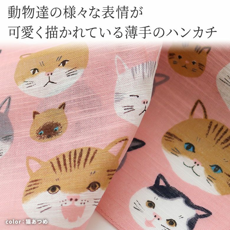 動物達の様々な表情が可愛く描かれている薄手のハンカチ 薄手の軽やかな風合いのハンカチで、ハンカチ以外にもお弁当を包んだり、収納棚・カゴバッグのちょっとした目隠しなどにも使えます。 >納期についてのご案内 販売期間 「在庫限り・再入荷の予定なし」数量限定生産品のため売り切れ次第販売終了となります。また各種オーダーの対象外です。 サイズ詳細 50×50cm ※商品サイズの表記はおおよその値となります。 素材 綿100% 製造 日本製(京都秀和がま口製作所) お支払方法 クレジットカード/コンビニ後払い/Amazon Pay/楽天ペイ/PayPayクレジットカード決済、Amazon Pay、PayPay、楽天ペイをご選択の場合、システムの都合上、商品発送前にご請求させて頂く場合がございます。何卒ご了承下さいますようお願い申し上げます。規約に基づき返品、キャンセルもお受付できます。 発送方法 ゆうパケット:全国一律330円 4個までなら発送可能 ゆうパック:全国一律770円 日時指定可能 ※10,000円以上ご購入頂いた場合は送料無料になります。 商品説明 動物達の様々な表情が可愛く描かれている薄手のハンカチ 薄手の軽やかな風合いのハンカチで、ハンカチ以外にもお弁当を包んだり、収納棚・カゴバッグのちょっとした目隠しなどにも使えます。 COLOR ・まねき猫・うさぎ・柴犬づくし・猫あつめ