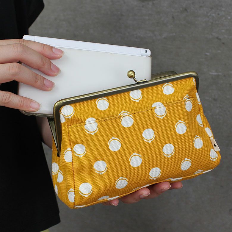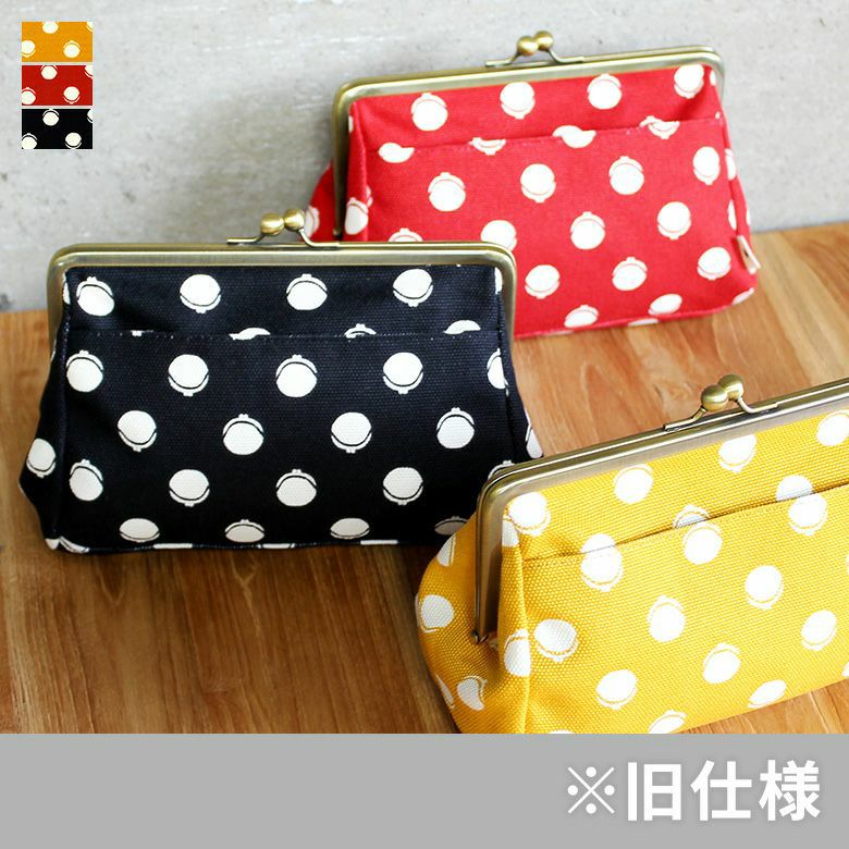 【在庫商品】がま口トラベルポーチ【帆布・がまドット柄 大判】 [M便 9/10]