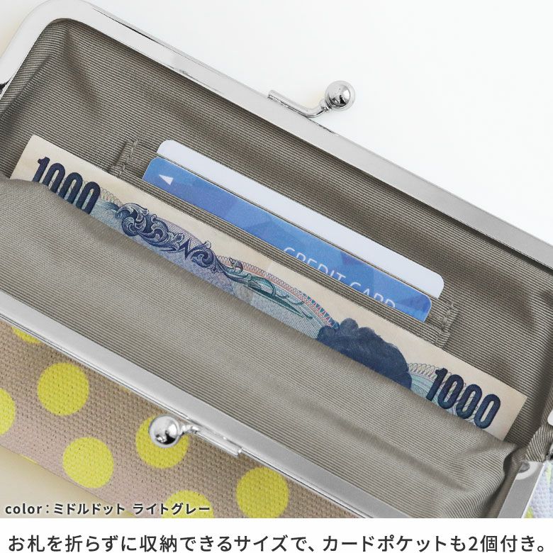薄型なのでバッグの中でもかさばりません。カードポケットが片側に2個ついているので、通帳、カード、現金などの貴重品をまとめられます。