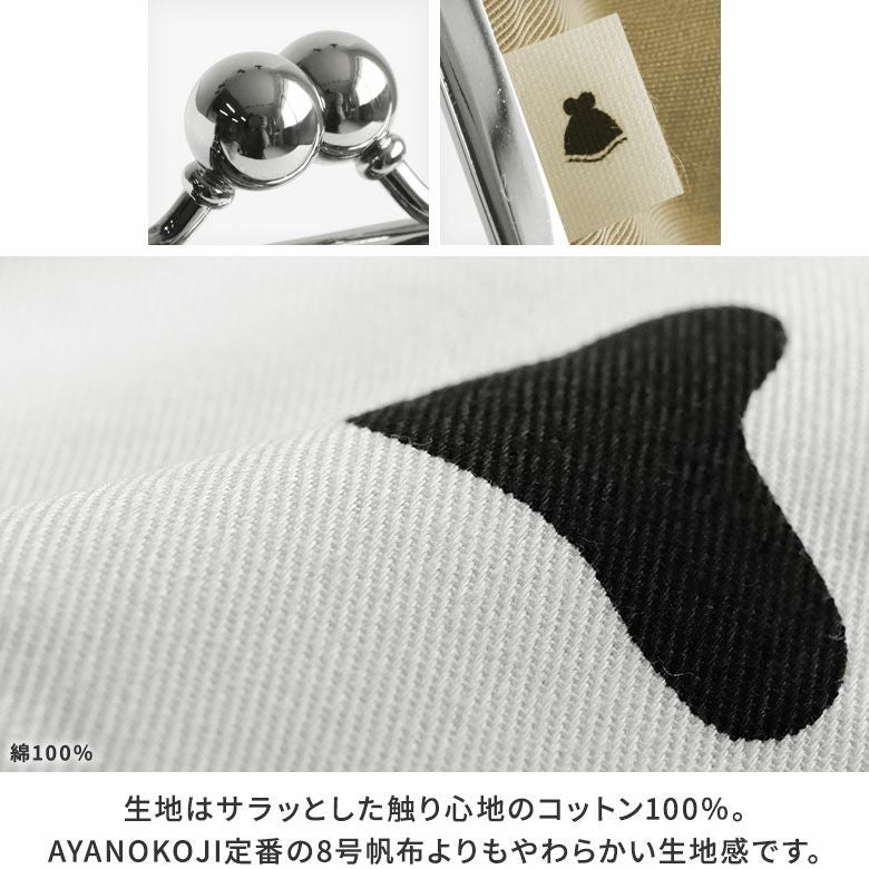 かさばらないスクエア型、スッキリフォルムのポーチ。 スリムなマチ幅なので、小さめバッグや、ビジネスバッグなどの薄型バッグの中でもかさ張りません。 小物の小分けに便利な内ポケットが付いています。 コスメ類やヘアアクセサリなどはもちろん、ガジェット系ケースやアイコスケースとしてもちょうど良いサイズ感でマルチに活躍します。 大きすぎず、小さすぎない、使い勝手の良いサイズなので、プレゼントとしてもおすすめ。 >納期についてのご案内 備考 ※生地の裁断により柄の出方は一点一点異なります。柄の指定は受け付けておりません。※商品の仕様や価格は予告なく変更する場合があります。※がま口はその特性上、荷物の大きさや重さで強い力が加わると口金が開きやすくなります。※内寸外寸ともに実寸で表記しています。※生地の種類によって表記のサイズと誤差が生じる場合があります。※置いた状態で測っているので多少の誤差があります。※手づくりのため個体差があります。 あらかじめご了承ください。 販売期間 不定期生産品のため完売後の再入荷は未定となります。また各種オーダーの対象外です。 サイズ詳細 <本体> 外寸:高さ11.5cm、幅17cm、マチ5cm 内寸:高さ9.5cm、幅14cm 内ポケット:高さ7.5cm、幅14cm <重さ> 85g ※外寸は口金を含みます。※内寸は口金を含みません。 素材 <袋> 表地:綿100%、裏地:レーヨン100%(※裏地の色は共通) <口金> 鉄(シルバー) 製造 日本製(京都秀和がま口製作所) お支払方法 クレジットカード/コンビニ後払い/Amazon Pay/楽天ペイ/PayPayクレジットカード決済、Amazon Pay、PayPay、楽天ペイをご選択の場合、システムの都合上、商品発送前にご請求させて頂く場合がございます。何卒ご了承下さいますようお願い申し上げます。規約に基づき返品、キャンセルもお受付できます。 発送方法 ゆうパケット:全国一律330円 2個までなら発送可能 ゆうパック:全国一律770円 日時指定可能 ※10,000円以上ご購入頂いた場合は送料無料になります。 商品説明 かさばらないスクエア型、スッキリフォルムのポーチ。 スリムなマチ幅なので、小さめバッグや、ビジネスバッグなどの薄型バッグの中でもかさ張りません。 小物の小分けに便利な内ポケットが付いています。 コスメ類やヘアアクセサリなどはもちろん、ガジェット系ケースやアイコスケースとしてもちょうど良いサイズ感でマルチに活躍します。 大きすぎず、小さすぎない、使い勝手の良いサイズなので、プレゼントとしてもおすすめ。 SERIES オンラインショップ限定、いつの時代もかわいい動物柄。 アニマル柄好きのスタッフ企画がシリーズ化!トレンド感と永遠の定番を両立したアニマル柄は季節や年齢を問わず、幅広いスタイルにフィットします。モード感もあり、遊び心もあり、カジュアルさもあり、あらゆるシーンで大活躍。プレゼントにもおすすめです。 生地はサラッとした触り心地のコットン100%。AYANOKOJI定番の8号帆布よりもやわらかい生地感です。 STAFF VOICE 中くらいの程よいサイズの使いやすい形のポーチと言えばコレ。定番中の定番と言っても過言ではないベーシックなタイプのポーチです。スタッフの中でも愛用者多数のポーチで、バッグに入れて持ち歩きするのにちょうど良いコンパクト感。お化粧直し用のコスメポーチとして使っているスタッフもいれば、アイ コス ケースとして使ったり、たばこケース、マスクケース、アクセサリーポーチなど、使い方はそれぞれ。また、お手頃価格なので、軽めのお誕生日プレゼントなど、ちょっとしたプレゼントにもおすすめ。ちょっと物足りないかな~っと思った時のプラスワンアイテムにもピッタリです。 ポーチ ケース レディース メンズ ユニセックス コスメ マスクケース ガジェットケース アイコス収納 アニマル 動物 アニマル柄 動物柄 牛 うし ホルスタイン holstein cattle cow bull ox calf きりん 麒麟 ジラフ giraffe しまうま 縞 ゼブラ zebra ヒョウ 豹 パンサー panther レオパード leopard ジャガー jaguar ネコ科 かわいい 女性が 喜ぶ 喜ばれる プレゼント もらって 嬉しい ちょっと 良いもの いいもの ちょい足し プラスワン ギフト おすすめ 日本製 京都 ガマグチ がまぐち