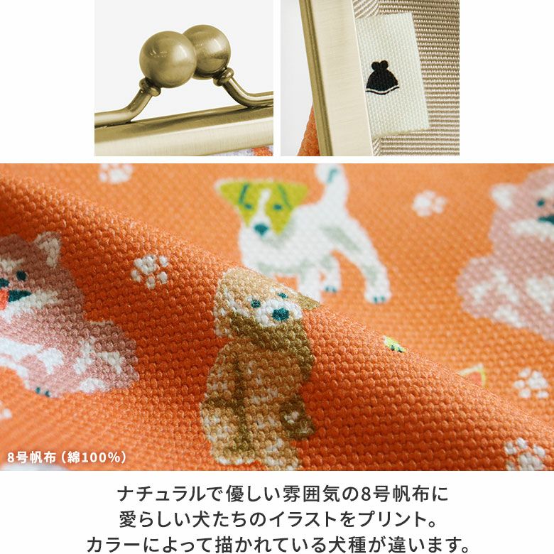 かさばらないスクエア型、スッキリフォルムのポーチ。 持っているだけで気分が上がる、犬のイラストがカラフルなポーチです。 >納期についてのご案内 備考 ※生地の裁断により柄の出方は一点一点異なります。柄の指定は受け付けておりません。※商品の仕様や価格は予告なく変更する場合があります。※がま口はその特性上、荷物の大きさや重さで強い力が加わると口金が開きやすくなります。※内寸外寸ともに実寸で表記しています。※生地の種類によって表記のサイズと誤差が生じる場合があります。※置いた状態で測っているので多少の誤差があります。※手づくりのため個体差があります。 あらかじめご了承ください。 販売期間 「在庫限り・再入荷の予定なし」数量限定生産品のため売り切れ次第販売終了となります。また各種オーダーの対象外です。 サイズ詳細 <本体> 外寸:高さ11.5cm、幅17cm、マチ5cm 内寸:高さ9.5cm、幅14cm 内ポケット:高さ7.5cm、幅14cm <重さ> 85g ※外寸は口金を含みます。※内寸は口金を含みません。 素材 <袋> 表地:綿100%(8号帆布) 裏地:レーヨン100% <口金> 鉄(アンティークゴールド) 製造 日本製(京都秀和がま口製作所) お支払方法 クレジットカード/コンビニ後払い/Amazon Pay/楽天ペイ/PayPayクレジットカード決済、Amazon Pay、PayPay、楽天ペイをご選択の場合、システムの都合上、商品発送前にご請求させて頂く場合がございます。何卒ご了承下さいますようお願い申し上げます。規約に基づき返品、キャンセルもお受付できます。 発送方法 ゆうパケット:全国一律330円 2個までなら発送可能 ゆうパック:全国一律770円 日時指定可能 ※10,000円以上ご購入頂いた場合は送料無料になります。 商品説明 かさばらないスクエア型、スッキリフォルムのポーチ。 持っているだけで気分が上がる、犬のイラストがカラフルなポーチです。 スリムなマチ幅なので、小さめバッグや、ビジネスバッグなどの薄型バッグの中でもかさ張りません。 小物の小分けに便利な内ポケットが付いています。コスメ類やヘアアクセサリなどはもちろん、ガジェット系ケースやアイコスケースとしてもちょうど良いサイズ感でマルチに活躍します。 大きすぎず、小さすぎない、使い勝手の良いサイズなので、プレゼントとしてもおすすめ。 SERIES カラフルでにぎやかな愛らしい犬たちが大集合!チワワからゴールデンレトリーバーまで、様々な犬種を手描きタッチのイラストで表現したColorful Dog(カラフルドッグ)シリーズ。普段使いにはもちろん、犬好きさんへのプレゼントにもおすすめです。 MATERIAL & COLOR ナチュラルで優しい雰囲気の8号帆布に愛らしい犬たちのイラストをプリント。肉球×小型犬が元気な印象のコーラルオレンジ、ボール×中型犬が楽し気なアップルグリーン、ホネ×大型犬がご機嫌なターコイズブルーの3色展開です。
