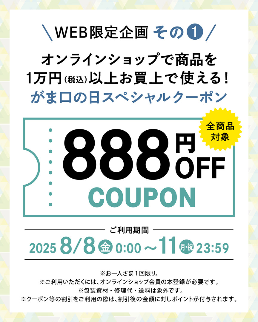 ※オンラインショップ本店…8月8日(金) 0:00~8月11日(月・祝) 23:59