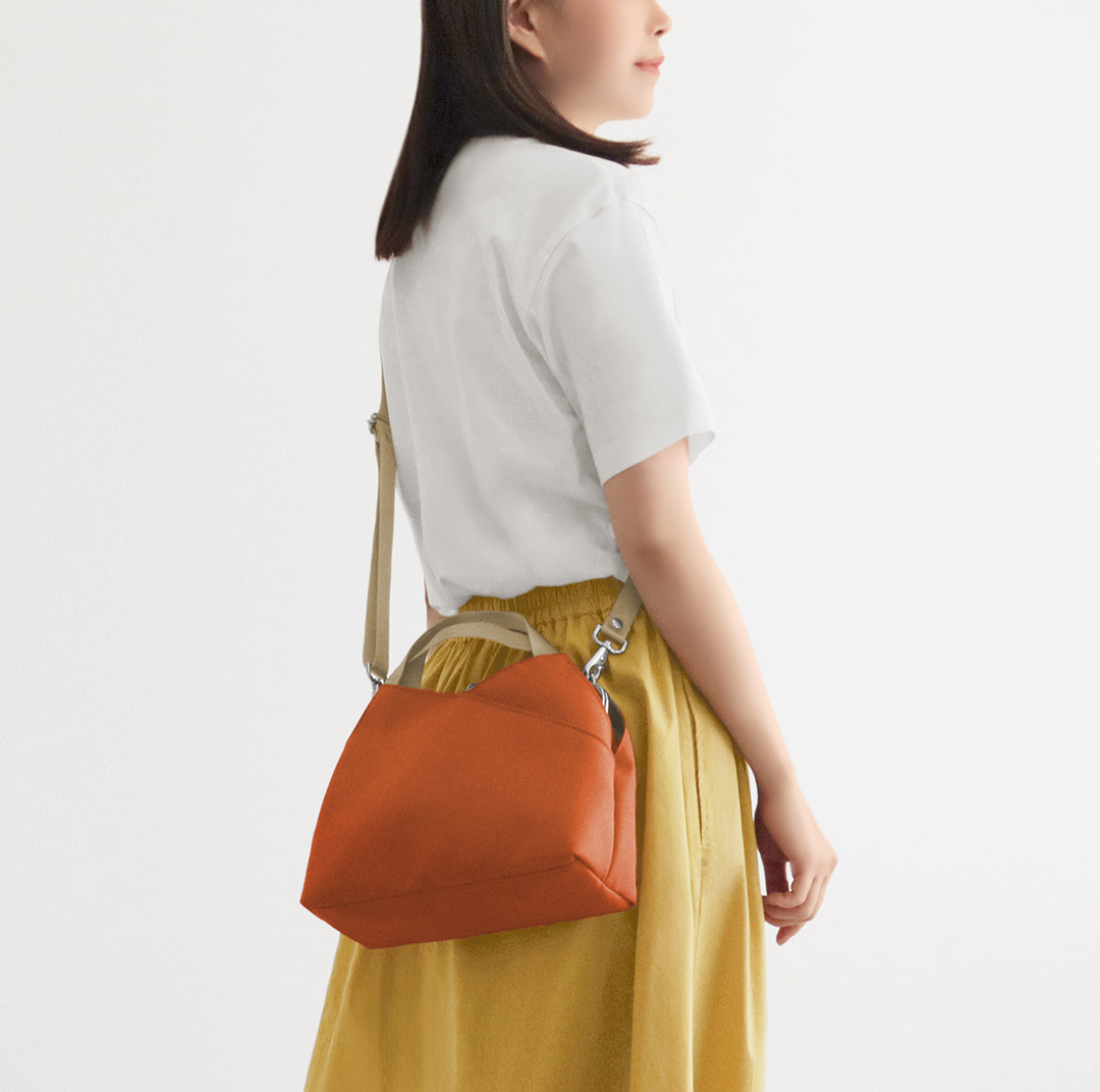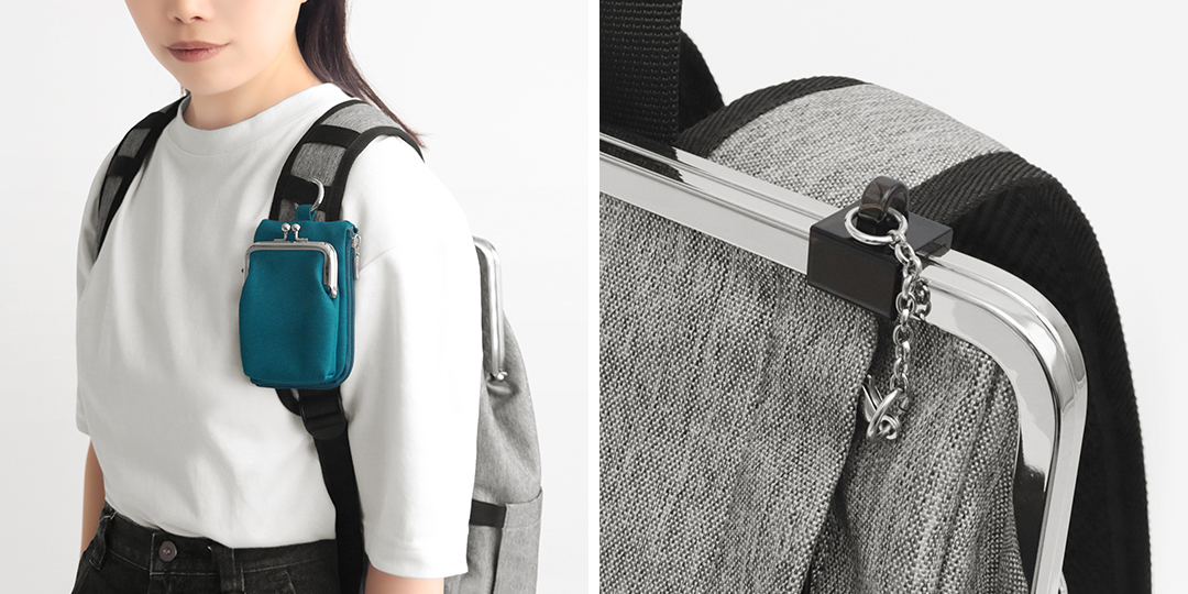 ハンドバッグにもなるミニマムなサイズ感が人気の「がま口レイヤードショルダー」は、V字カットのラインから覗く、ひねりや裏地がポイント。ショルダーベルトを外してトートバッグとしても持てます。