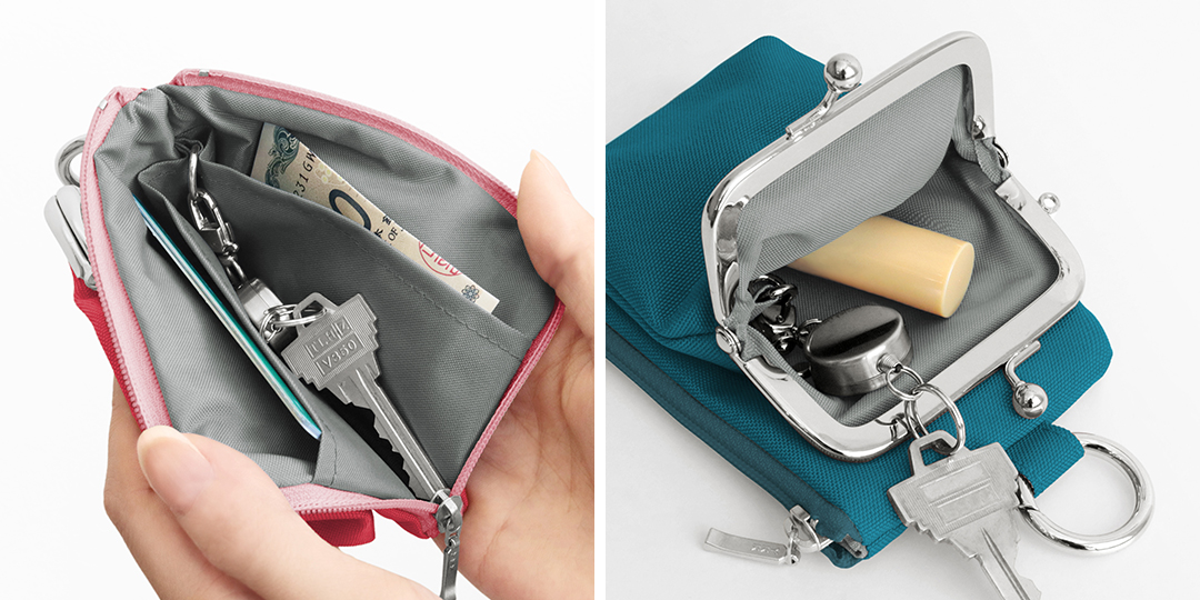 縦型がま口キーコインケース ¥5,445 / がま口レイヤードショルダーバッグ ¥12,100
