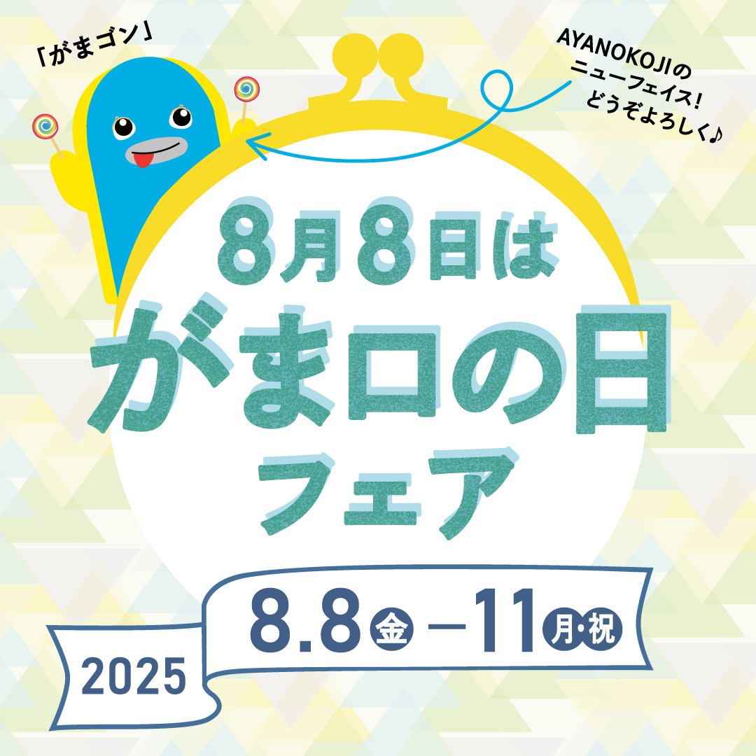 がま口専門店としてより多くの方にがま口の魅力をお伝えするため、AYANOKOJI 全実店舗&オンラインショップで、毎年恒例の記念イベントを開催します!スタッフ一同、皆様のお越しを心よりお待ちしております。