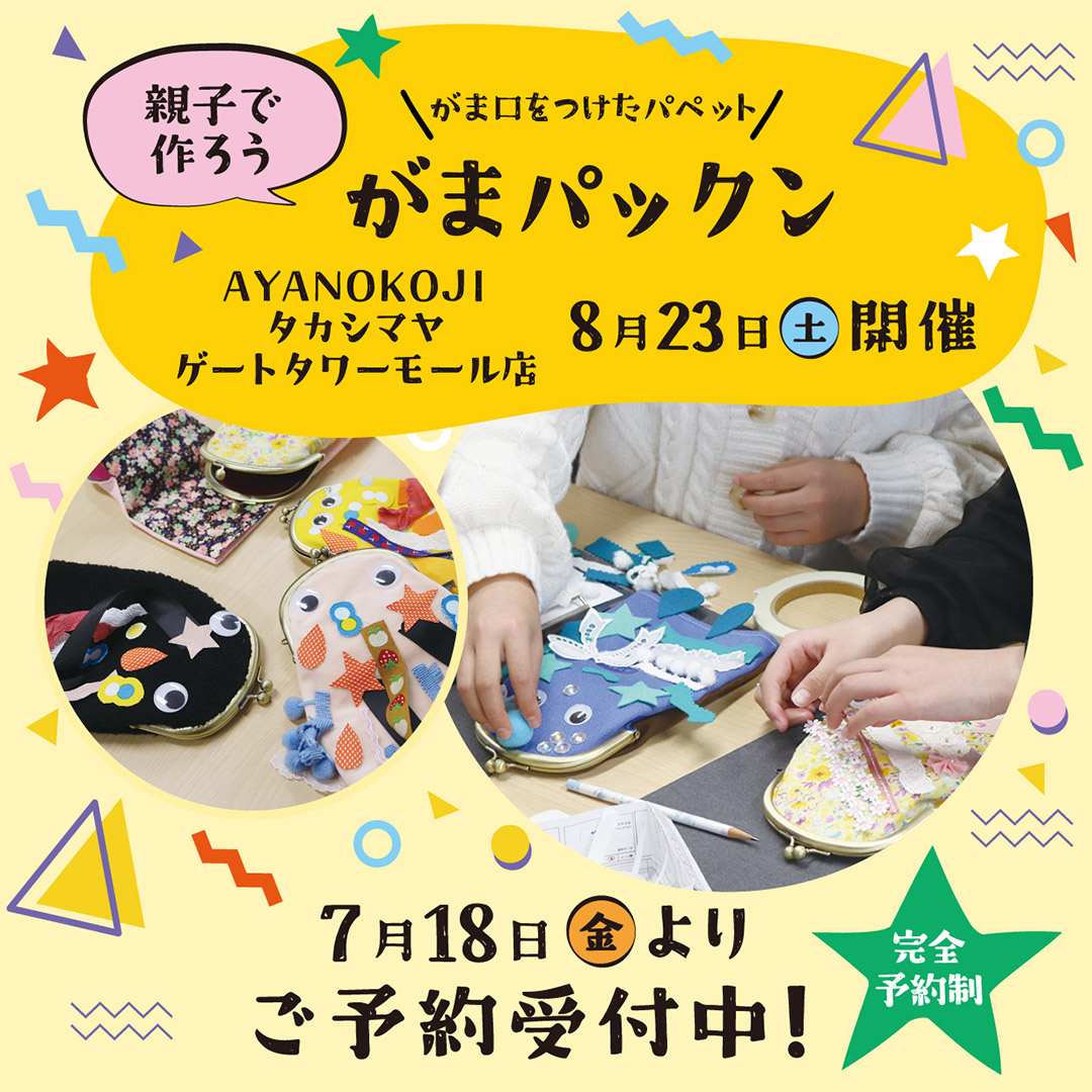 8月23日(土)、タカシマヤ ゲートタワーモール店にてワークショップ『親子で作ろう!がまパックン』を開催⭐