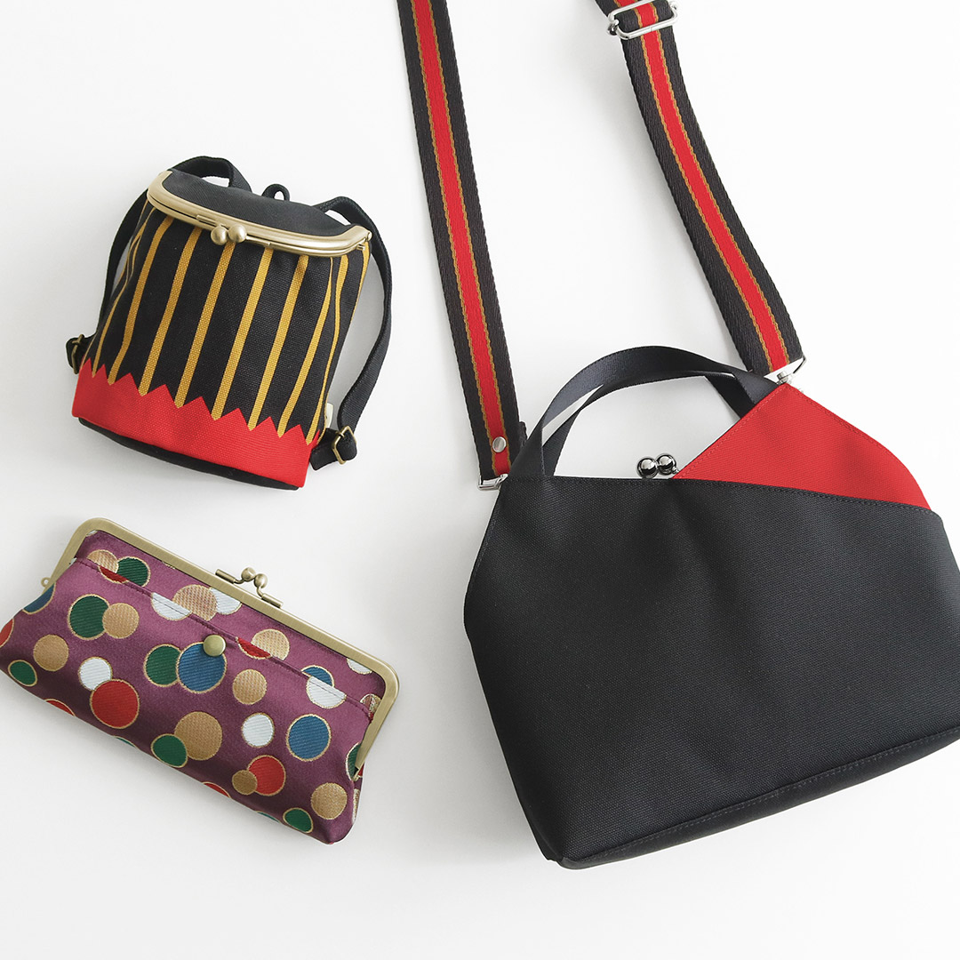 がま口レイヤードショルダー ¥13,200 / がま口スクエアワンショルダーバッグ ¥15,400 / がま口縦型ワンショルダーバッグ ¥16,500