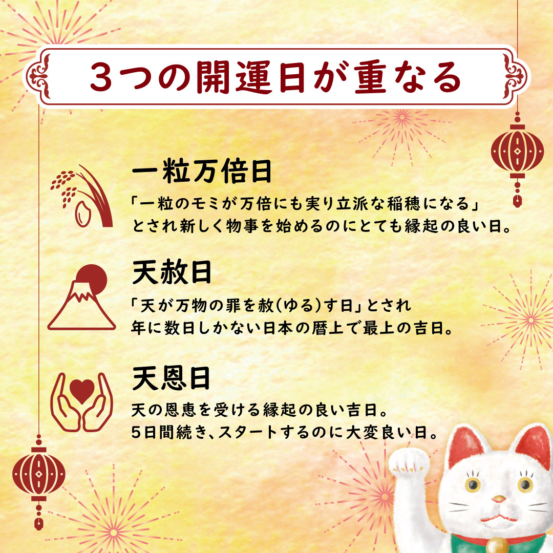 一粒万倍日・天赦日・天恩日の3つの良い日が重なる最強開運日です✨