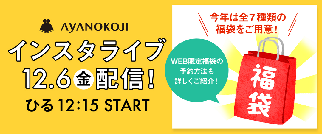 AYANOKOJIから、今年は全7種類の豊富な福袋をご用意しました!数量限定で売り切れ次第終了の早い者勝ちです👀💦ぜひゲットしてください✨