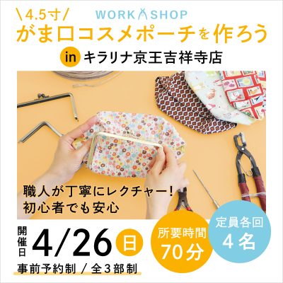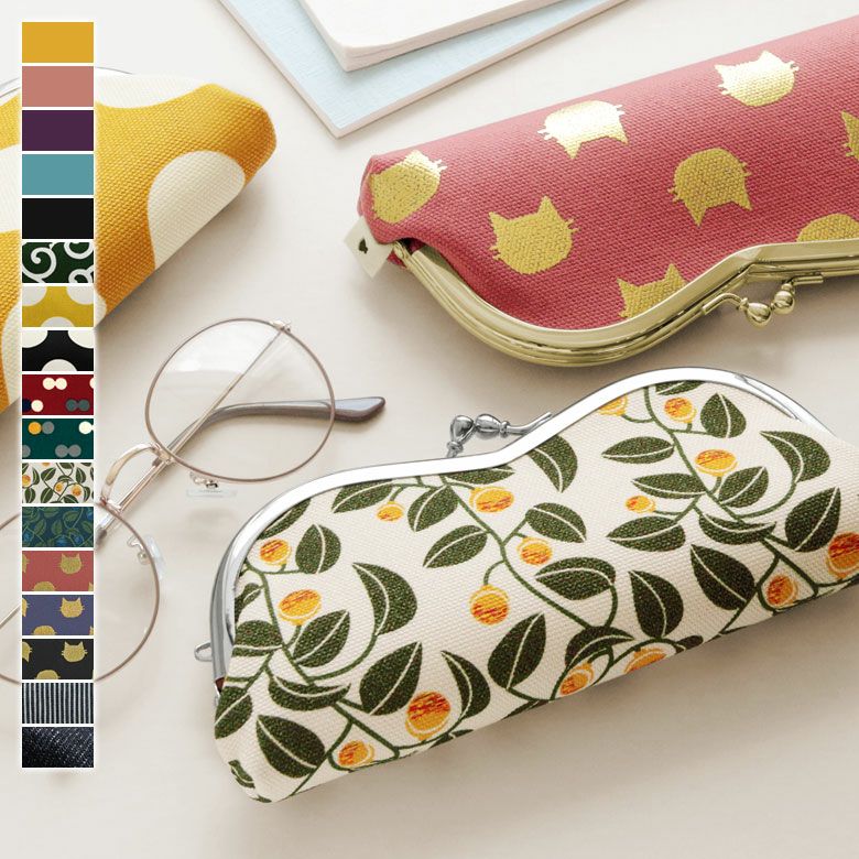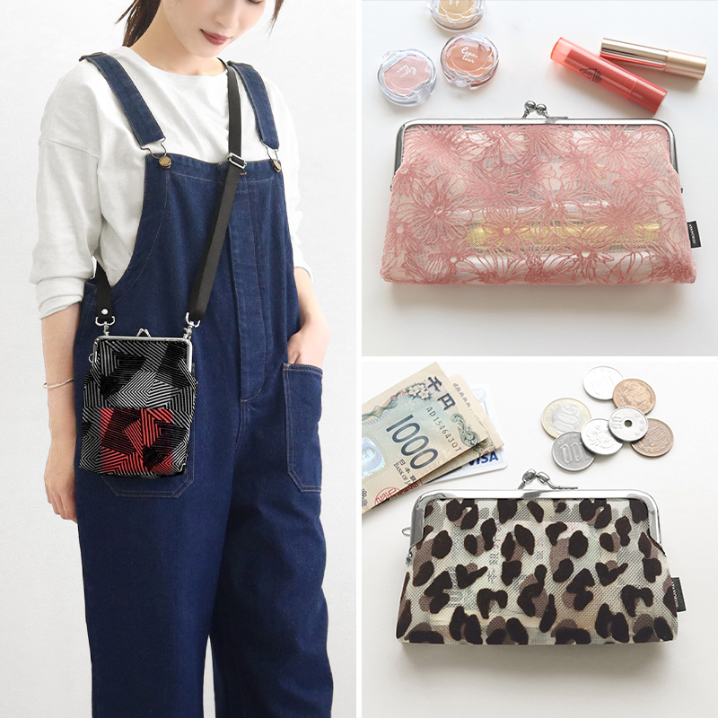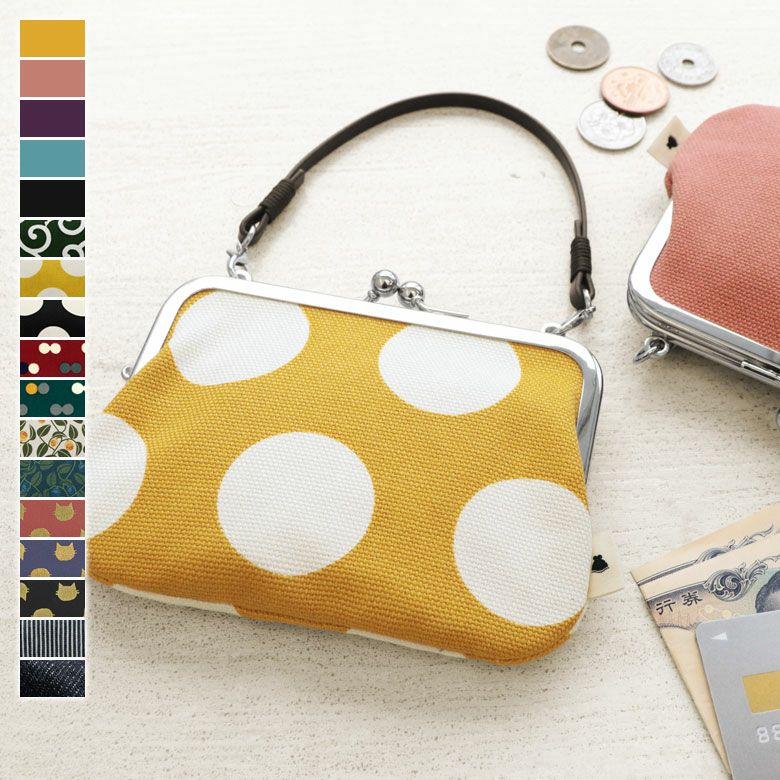シンプルで使いやすい自立式のポーチです。口金は大きく開くため、中身が見やすく取り出しやすいのがポイント。