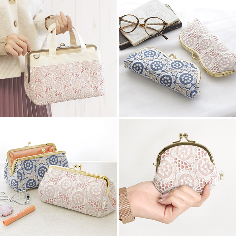 春らしい色合いの生地とリボンが馴染む上品で華やかなシリーズです。