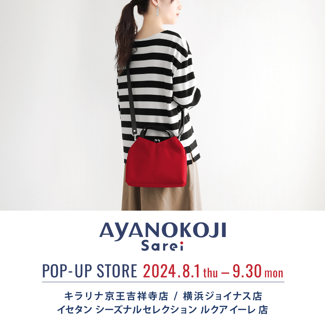 8月1日(木)~9月30日(月)の期間限定で、吉祥寺・横浜・梅田にて<AYANOKOJI Sarei (アヤノコウジ サレイ)>のPOP UPを同時開催!