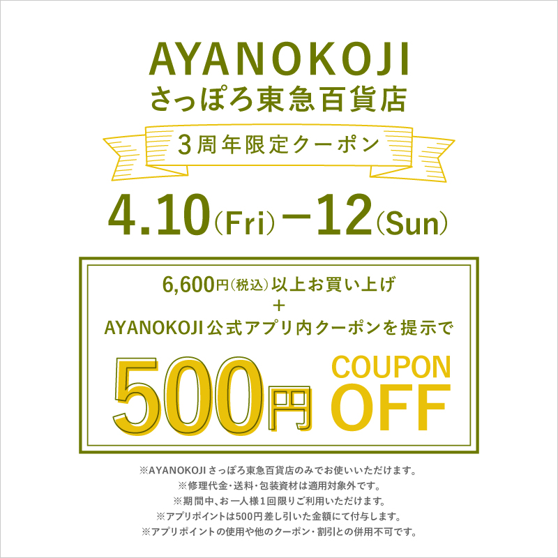 さっぽろ東急百貨店にて期間中6,600円(税込)以上のお買い上げで、アプリの500円OFFクーポンをご利用いただけます!ぜひこの機会にお買い物ください♪