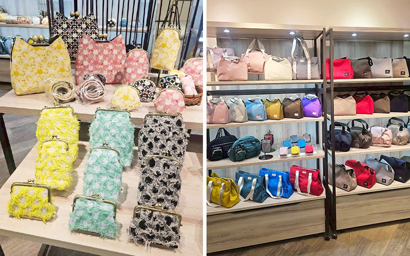 ▲ 限定商品や人気のバッグなど多数展開