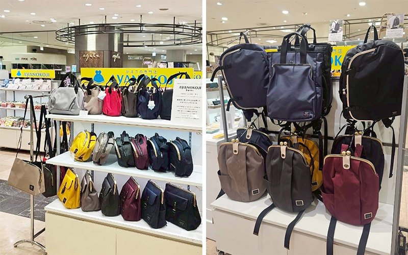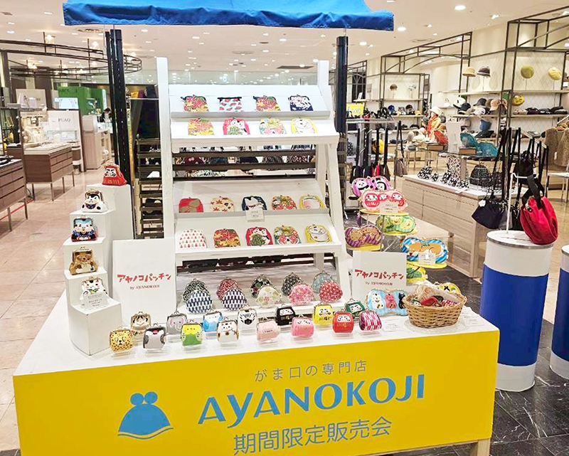 <AYANOKOJI>の定番アイテムや、クスッと笑える愉快な<アヤノコパッチン>のカラフルでユニークながま口アイテムなど多数展開。機能性と使いやすさを追求した<AYANOKOJI Sarei>の人気バッグもご用意しています。近くにお越しの際はぜひお立ち寄りください。