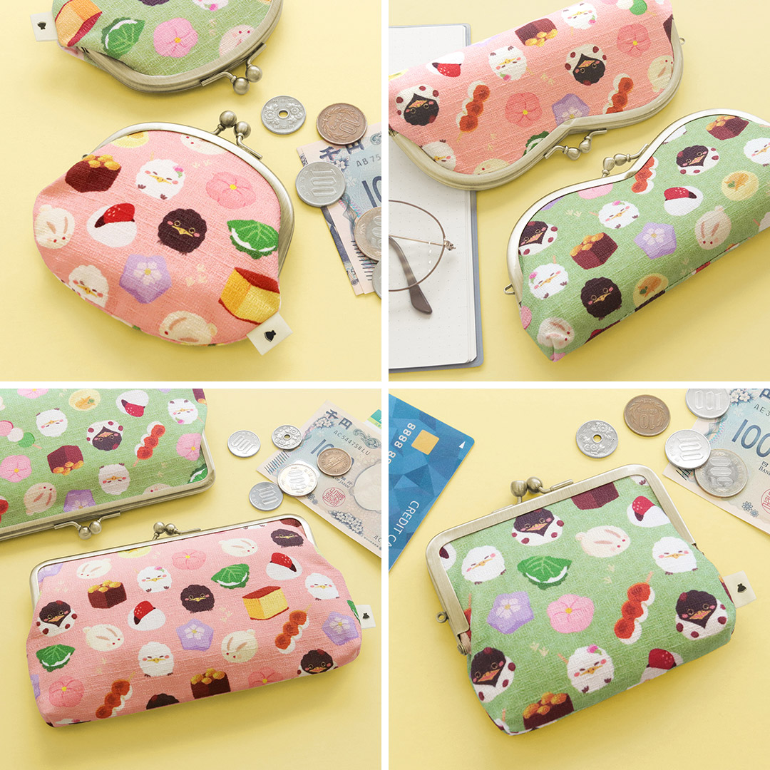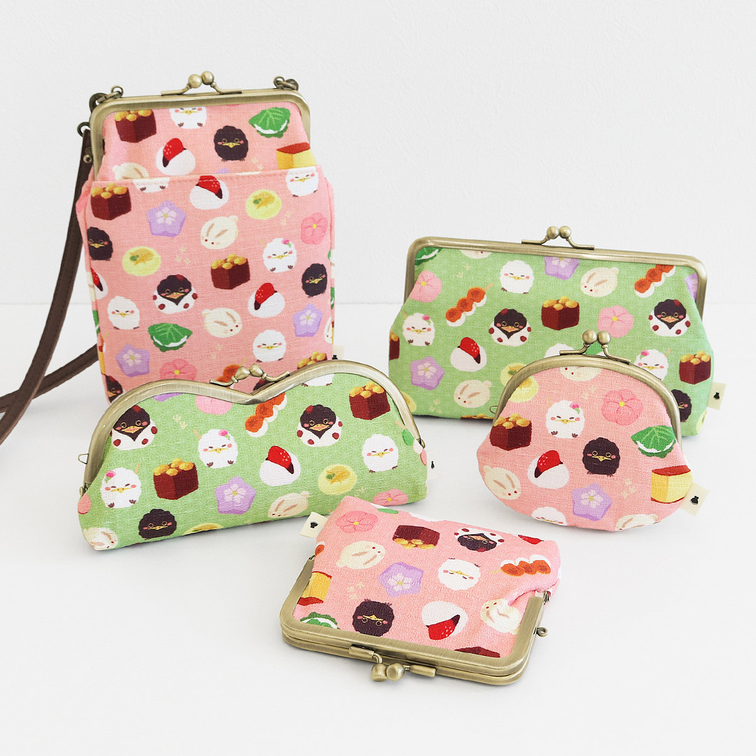 3.3寸がま口財布 ¥2,090 / 山型がま口メガネケース ¥3,190 / 6寸がま口平ポーチ ¥3,465 / 平親子がま口財布 ¥3,960 / がま口お散歩ポシェット ¥5,940