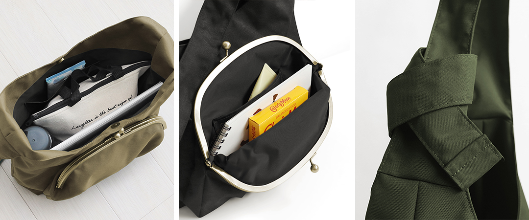 がま口ハバサック ¥16,500 / ポシェット型ボディバッグ ¥17,600 / がま口お散歩ポシェット ¥5,445【実店舗限定】