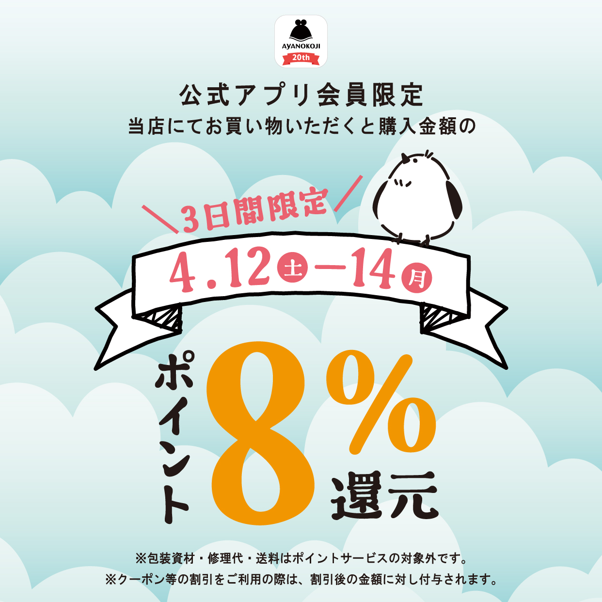 4月12日(土)~14日(月)の期間中、さっぽろ東急百貨店にて商品をご購入いただくとアプリポイントを8%還元!ぜひこの機会にお買い物を♪