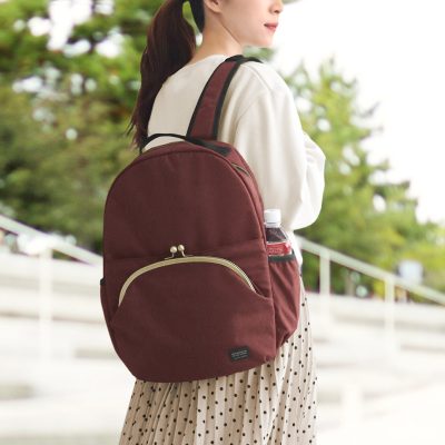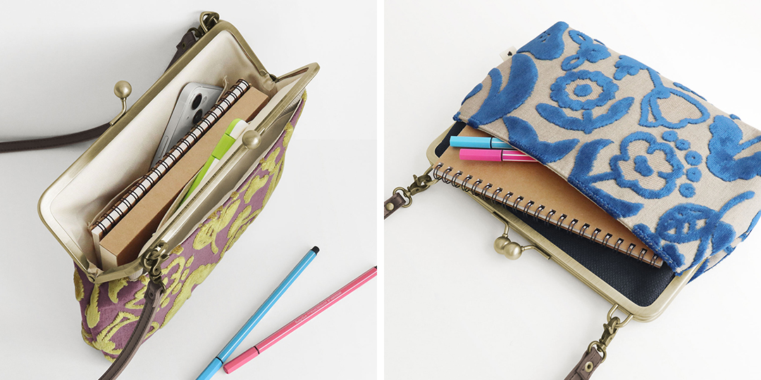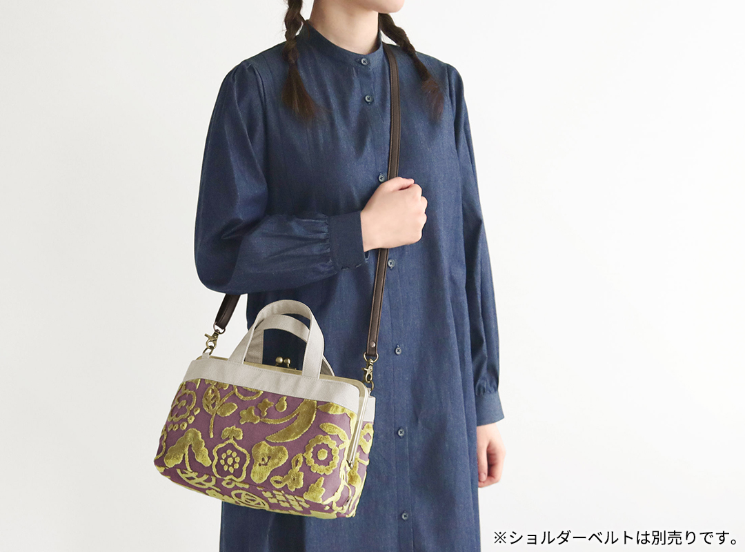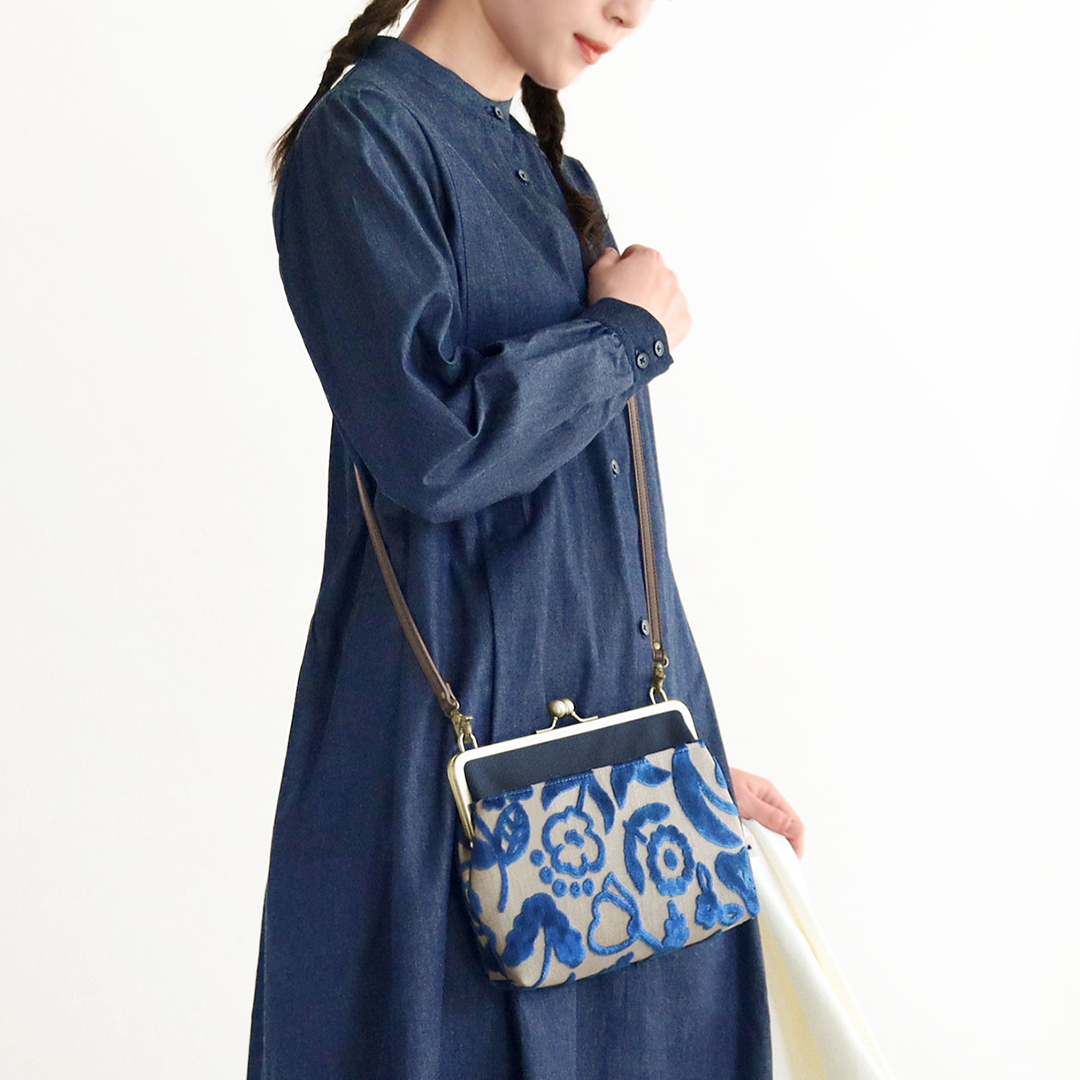 「ポケット付きがま口スクエアポシェット」は、旅先でのお出かけや、お祭り、スポーツ観戦など、少ない荷物にちょうど良い小さめショルダーバッグです。
