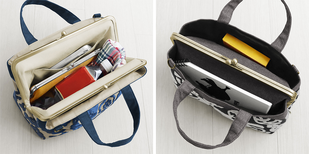 ポケット付きがま口スクエアポシェット ¥7,480 / がま口手提げバッグ ¥15,400