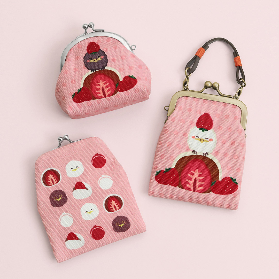 AYANOKOJI公式キャラクターの新シリーズ「ガマグチヨタカといちご」が登場!ガマグチヨタカ&ヨタまると、美味しそうないちご大福の組み合わせがかわいいデザインです。AYANOKOJI20周年をお祝いする、おめでたい紅白カラーがポイント♡