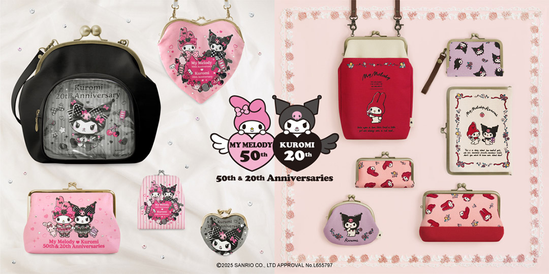 株式会社サンリオの人気キャラクター「マイメロディ」「クロミ」との特別なコラボアイテムが登場!2025年に50周年を迎えるマイメロディと20周年を迎えるクロミの、W周年限定のアートを使用したシリーズと、レトロかわいいアートを使用した、2シリーズ全11アイテムを展開します。