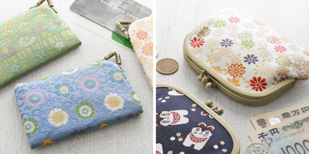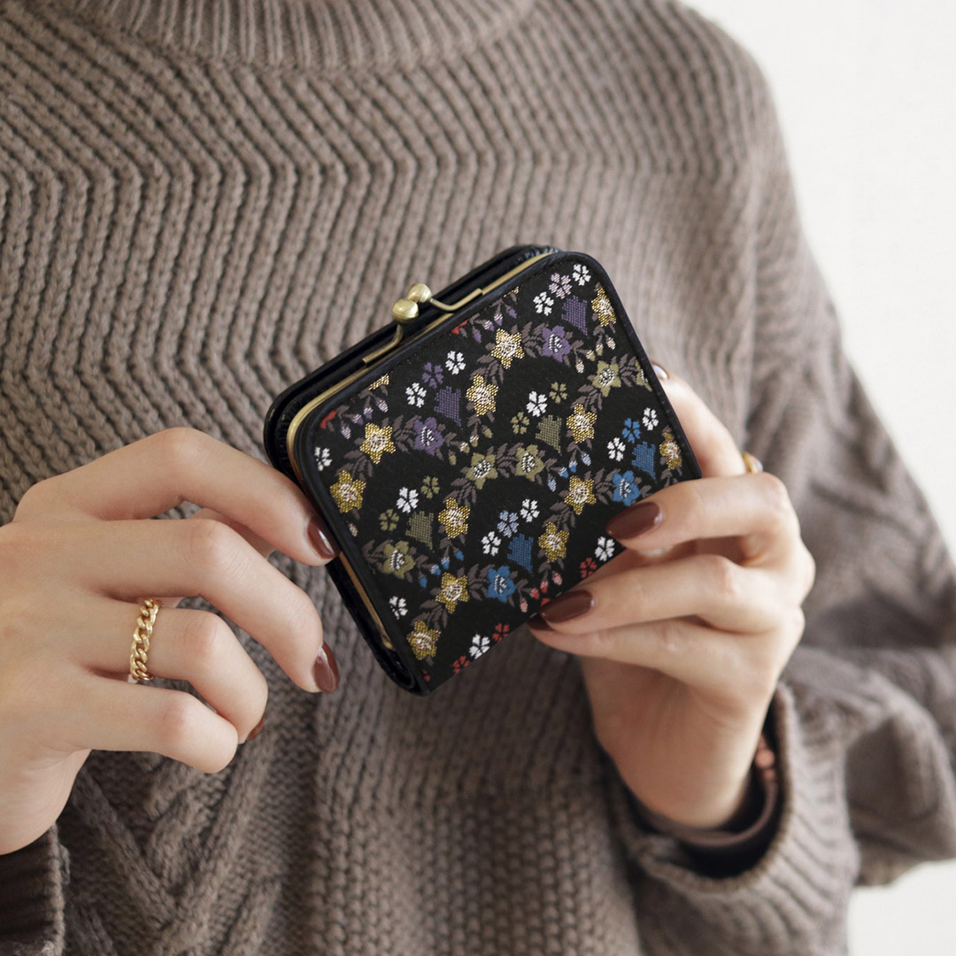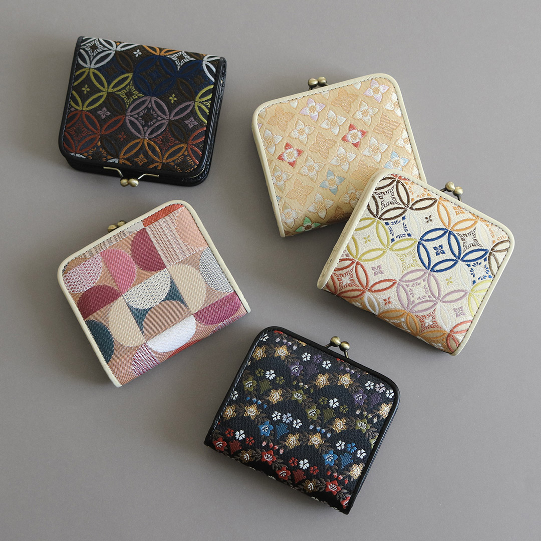 上品な金襴生地が目を引く、コンパクトな「二つ折りがま口ミニ財布」が登場!AYANOKOJIの定番2柄に、限定の3柄を加えた全5展開です。