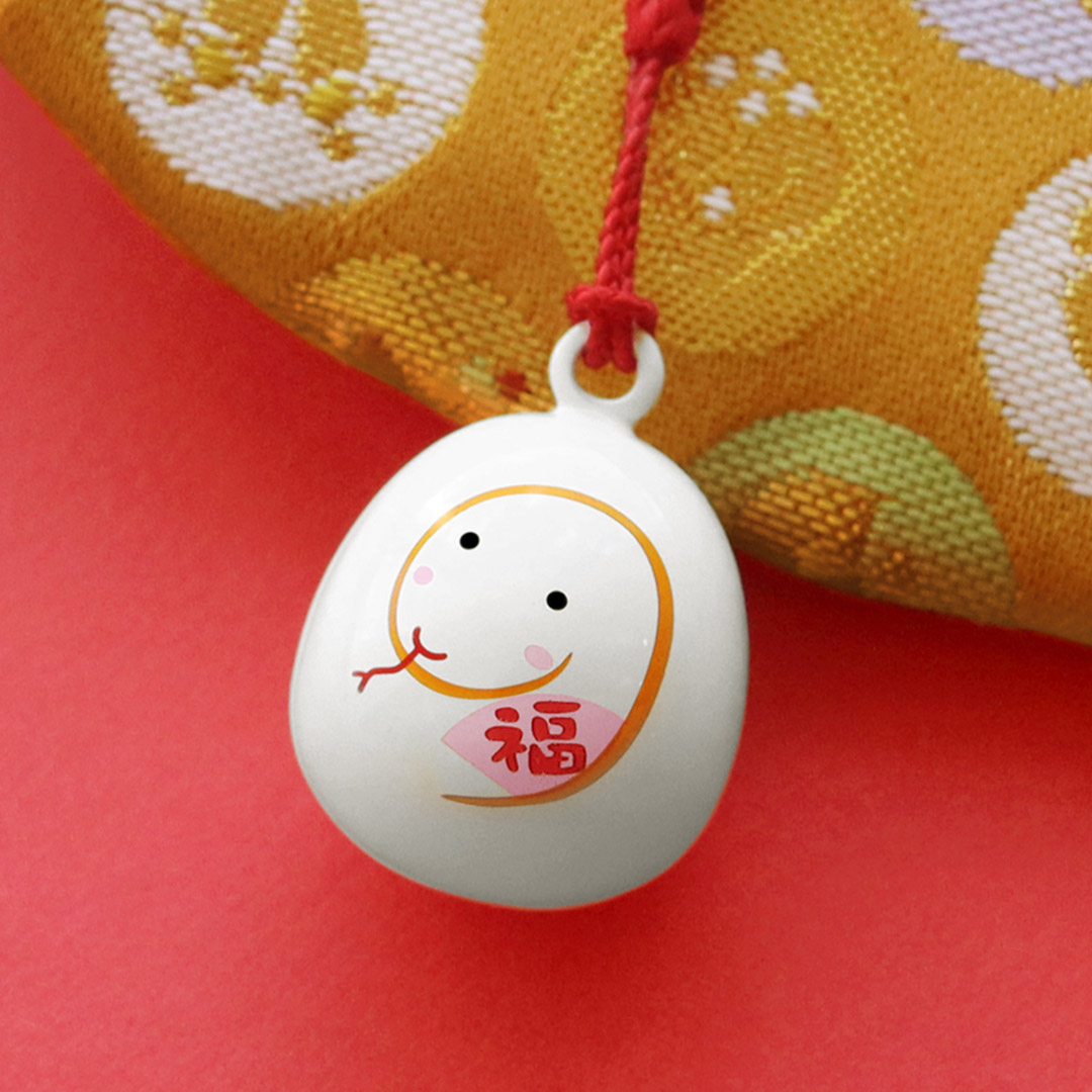 とぐろを巻いた白蛇の、コロンと丸い水琴鈴。水琴窟の音を再現した澄んだ優しい音色と柔らかな余韻に癒されます。鈴には幸運や金運を呼び込んだり、魔除けや浄化の効果があるといわれているので、お財布などに付けて持ち歩くのがおすすめです。
