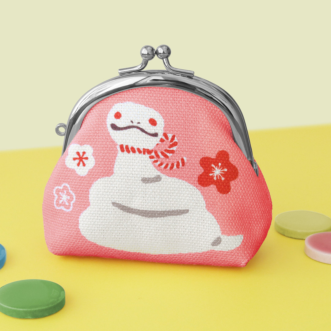 愛嬌のある白蛇のイラストがかわいいポーチ。コンパクトな手のひらサイズで小物入れに便利です。立てて置くこともできるので、お部屋に飾ってもいいですね♪