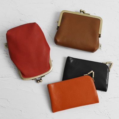 ミニがま口ストラップ ¥1,485 / 2.8寸角丸がま口財布 ¥1,595 / 3.3寸がま口財布 ¥2,090 / 革ヒモ付き手提げがま口財布(小) ¥2,585 / 4寸がま口平ポーチ(マチ有) ¥3,465