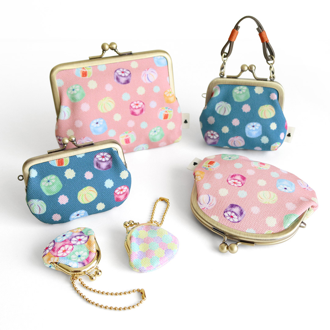 金平糖や組み飴、糸手まり飴など、カラフルで見た目も可愛らしい昔ながらの和飴をプリントしたオリジナルデザイン。小物のみのアイテム展開で、京都土産にもおすすめです。
