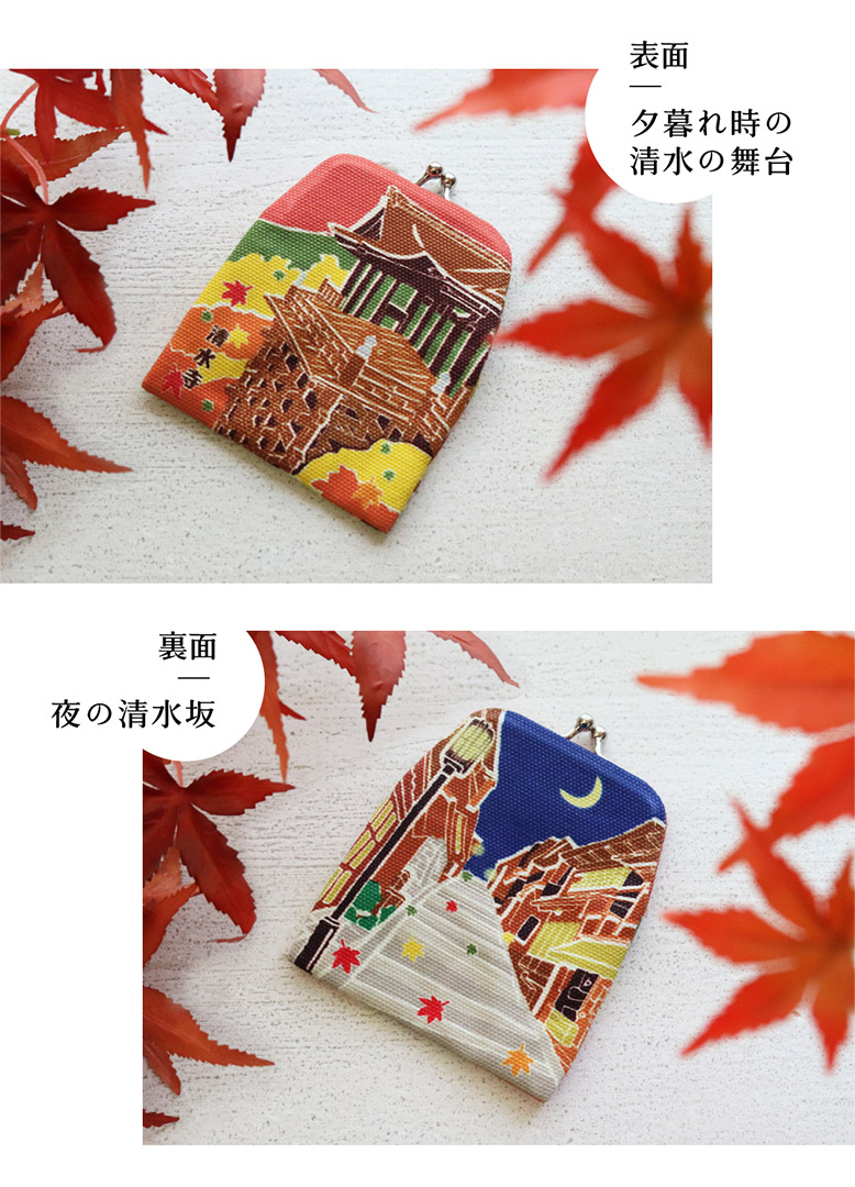 紅葉の季節になりましたね🍁そんな京都3店舗では、数量限定のがまポチ袋「もみじ清水寺」が登場!表と裏でそれぞれ異なる紅葉と清水の風景が楽しめるデザイン。旅行の記念やお土産にもぴったりです✨ぜひお早めに!