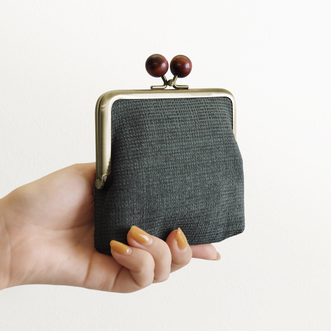「4寸がま口平ポーチ(マチ有)」は木玉ひねりがワンポイントになっています。