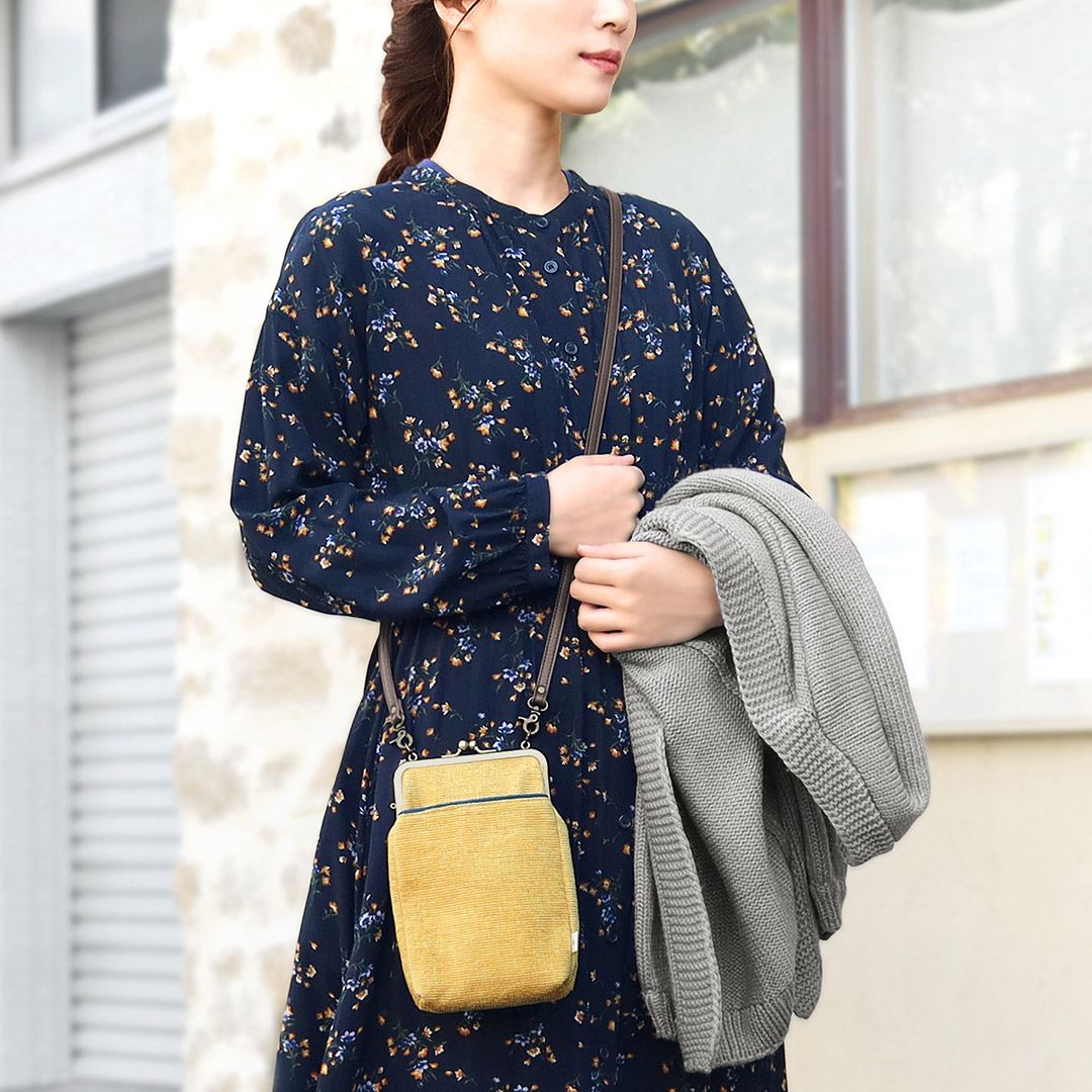 「がま口お散歩ポシェット」はツイストコードのパイピングがアクセントに。