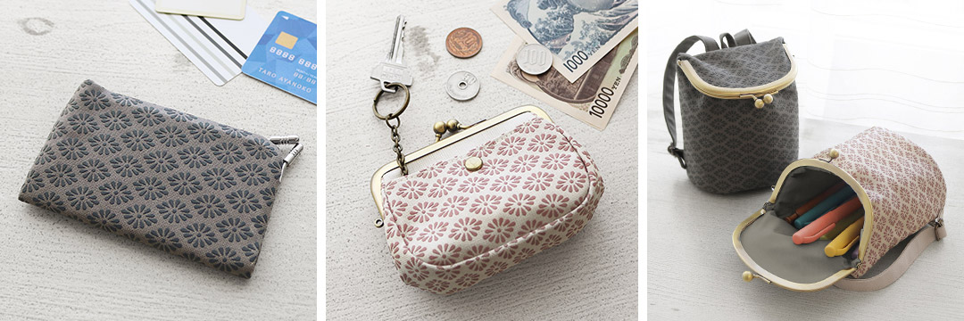 カードケースやポーチなど、外出時にあると便利な小物アイテムをご用意。「がま口SHOIKOポーチ」はカラビナなどでズボンのベルトループやバッグに付けて持ち運ぶこともできます。