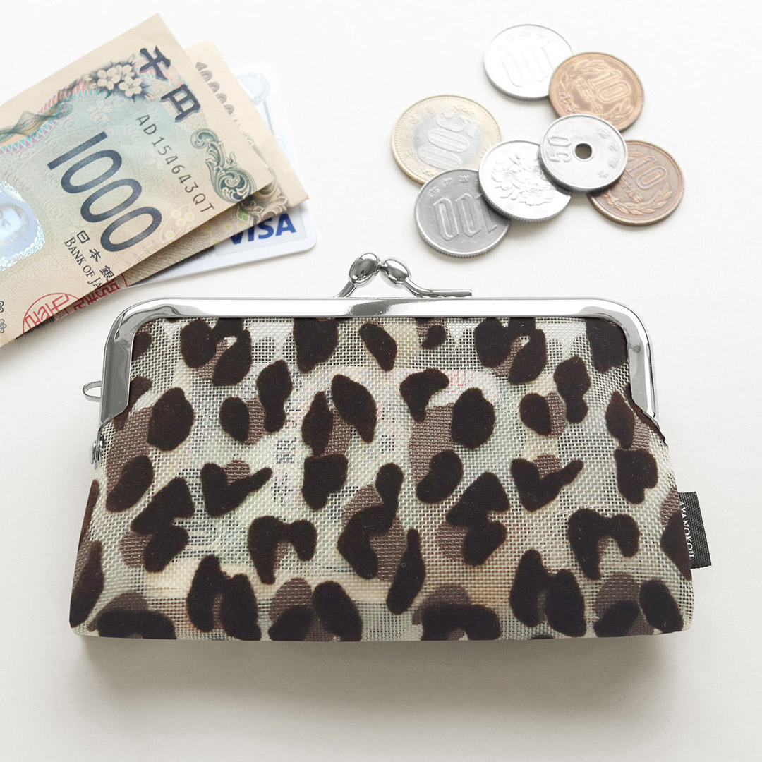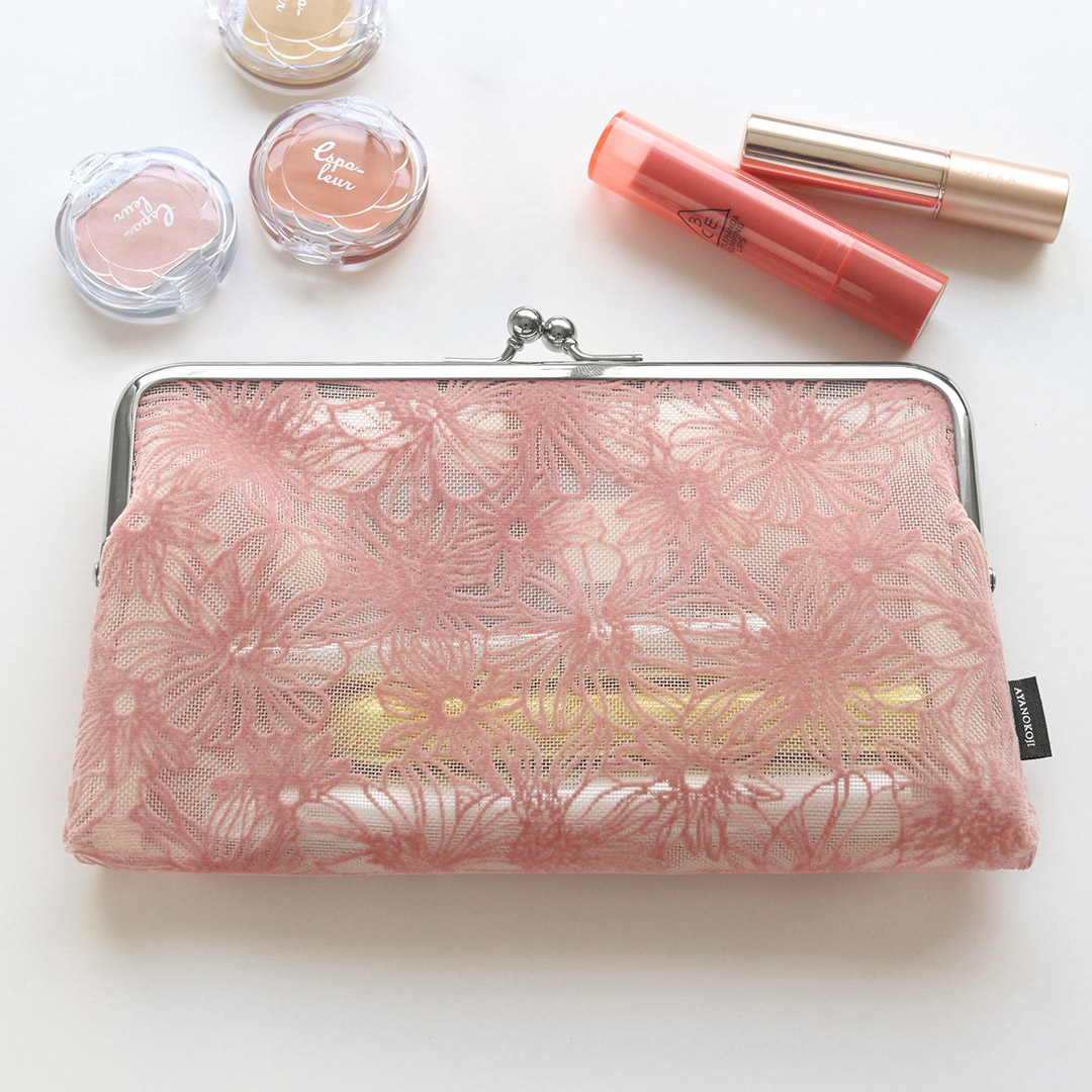 仕切りがないシンプル設計で、お財布や小物入れとして使える「がま口メッシュパース」