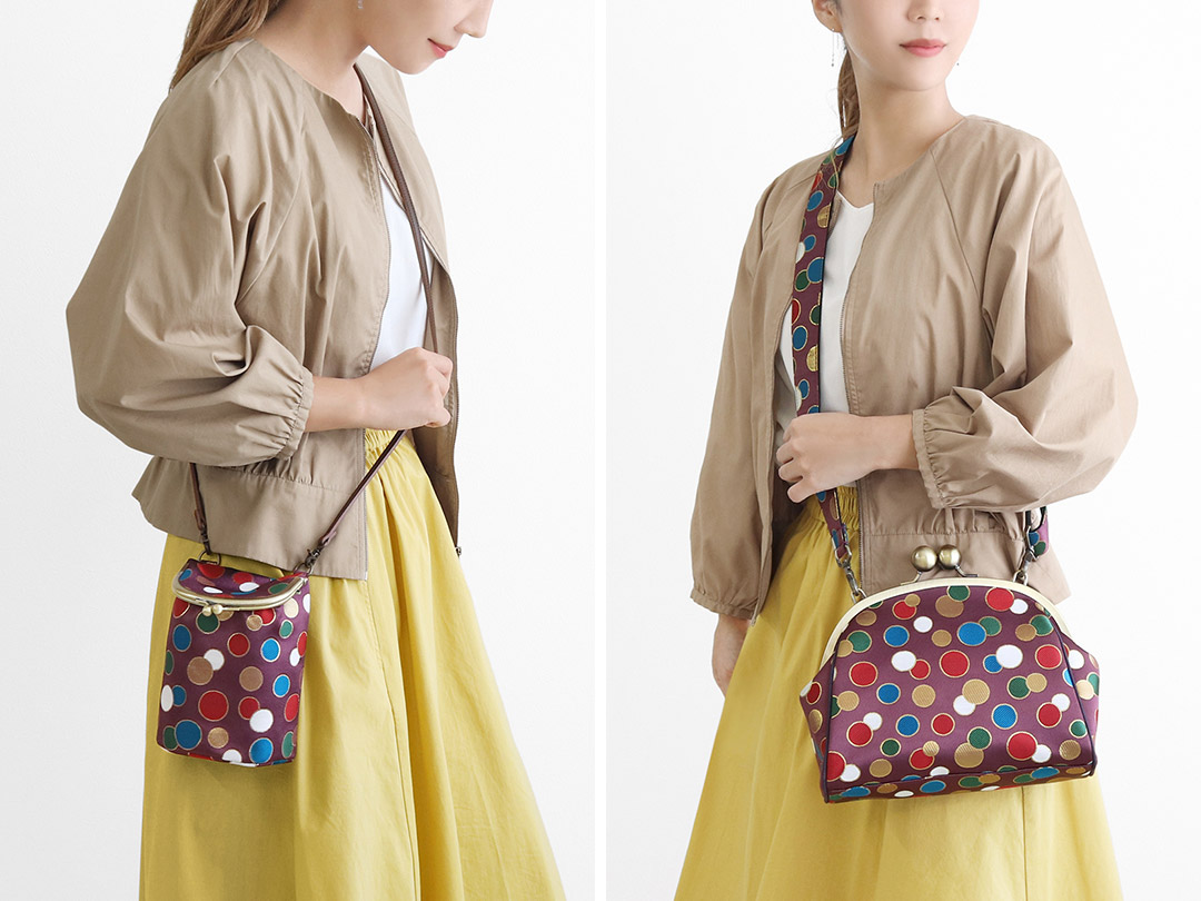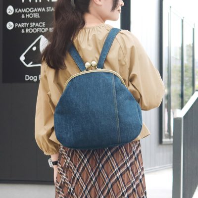 昔ながらの背負子からヒントを得た「がま口SHOIKOリュック」を小さなショルダーバッグにした「がま口SHOIKOポシェット」が新型アイテムで初登場!個性的な形がかわいいです♪