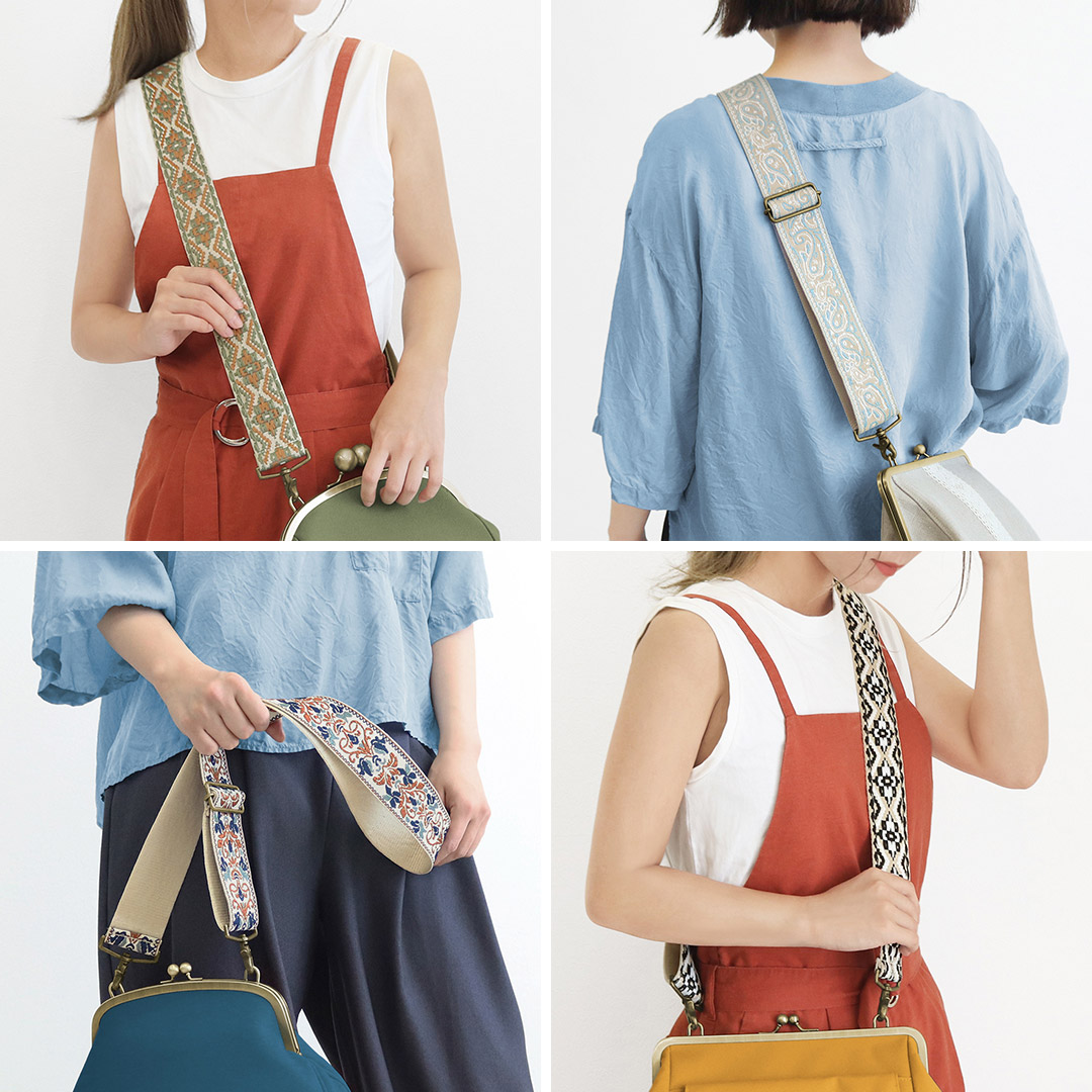 6月に一部実店舗で発売した「ショルダーバッグ用4.8cm幅テープベルト」を、ご好評につき全店舗で販売✨エレガントなアラベスク柄とペイズリー柄に、新しくチロリアン柄が加わりました。