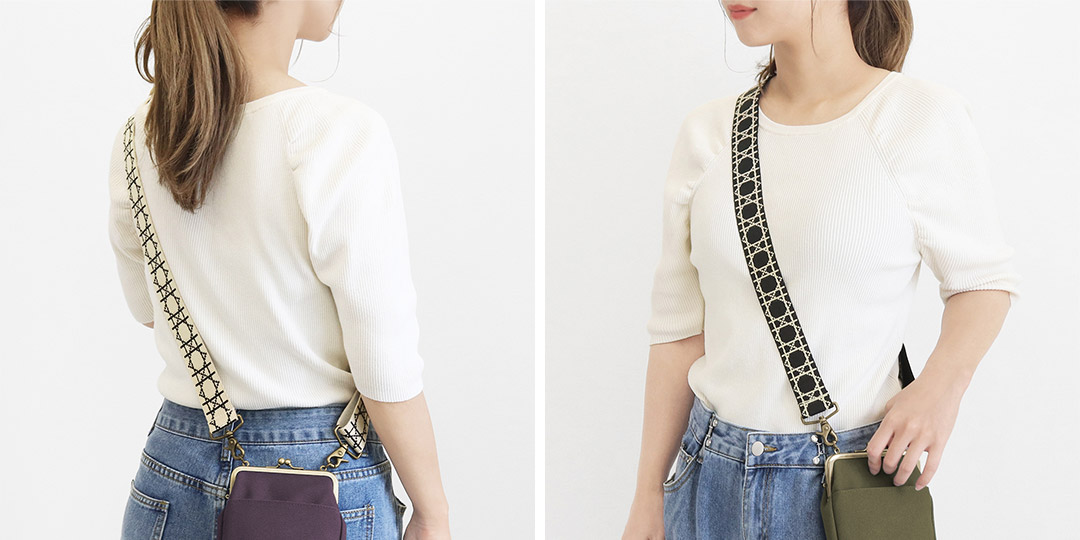今回は初登場の「ショルダーバッグ用3.8cm幅テープベルト」も同時販売!細身でシンプルな幾何柄の2色展開です。